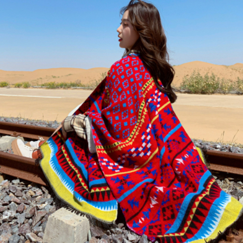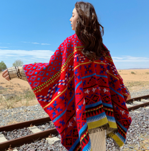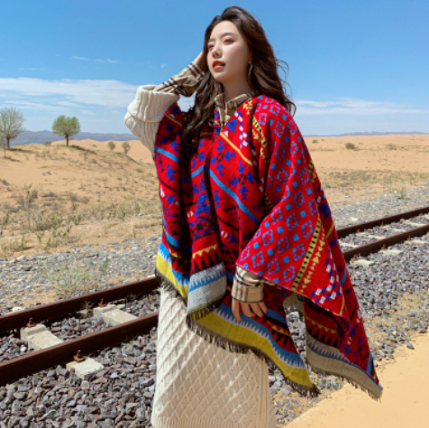 Outer Sunscreen Hooded Scarf Red Chinese Style Knitted Coat