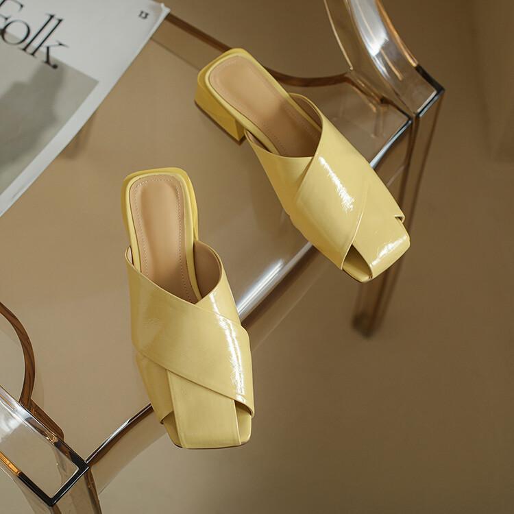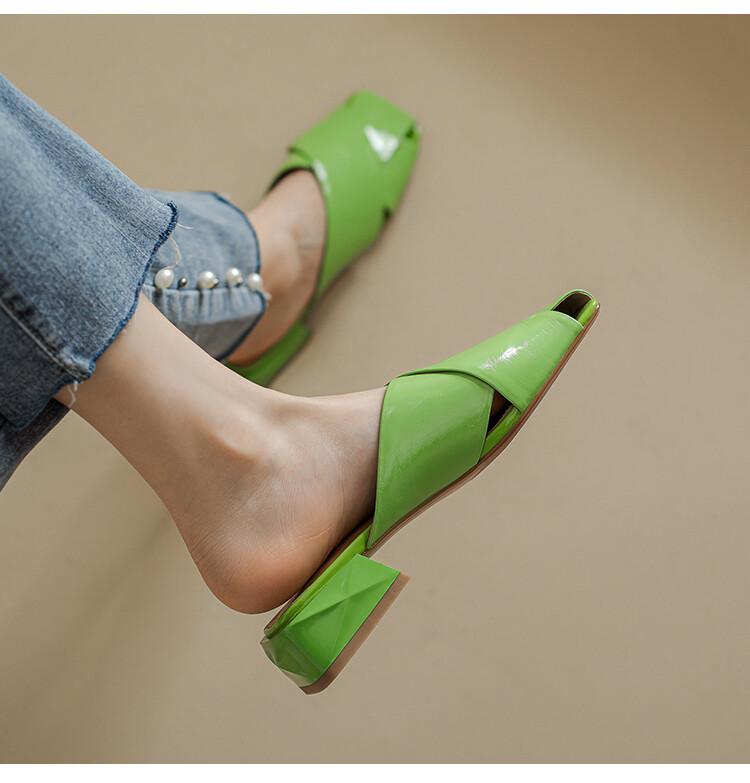 Outer Wear Muller Women's Sandals And Half Slippers With Low Heels Green Lemon Yellow White