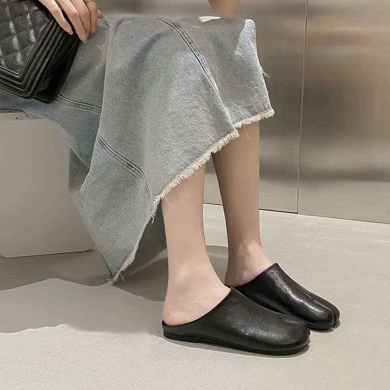 Outer Wear Split Toe Sheepskin Closed Toe Half Slippers