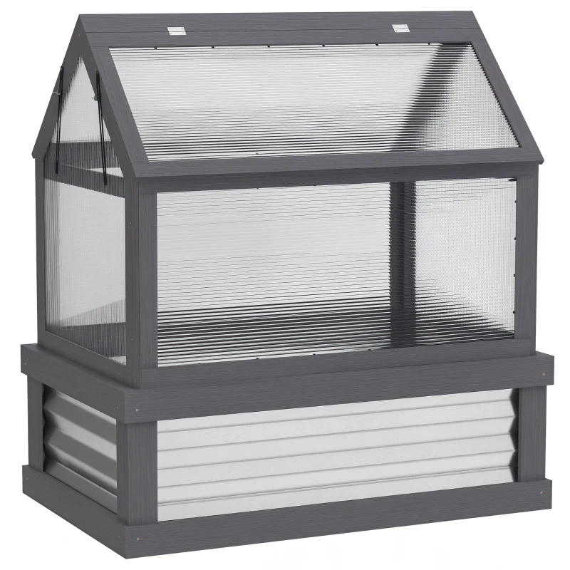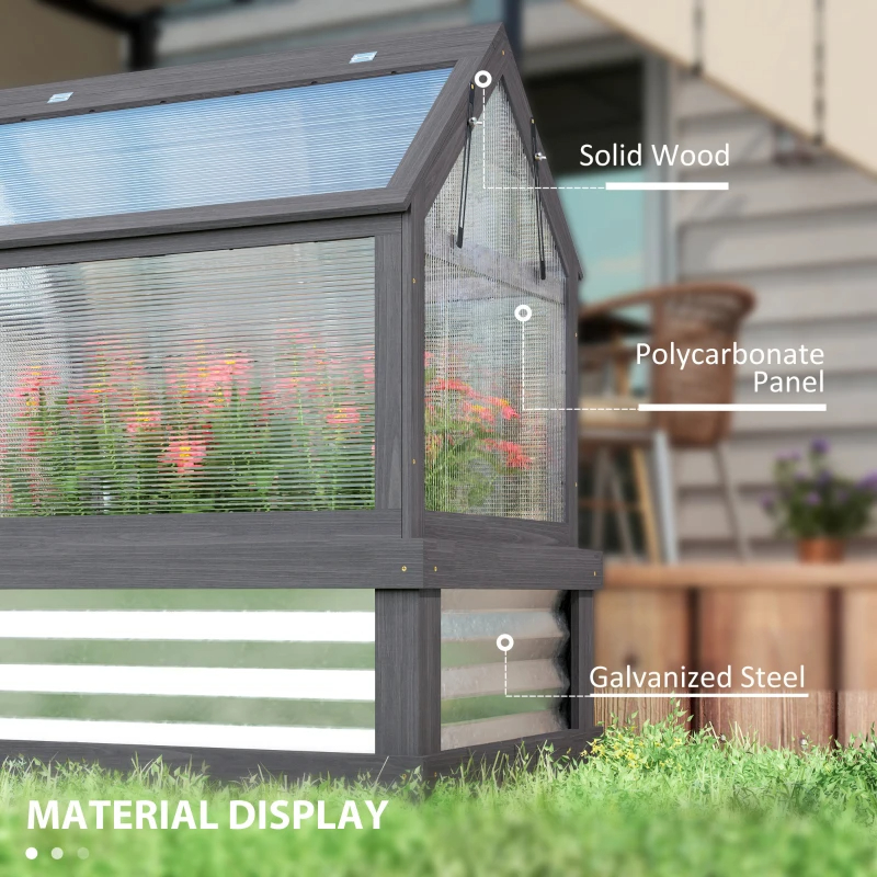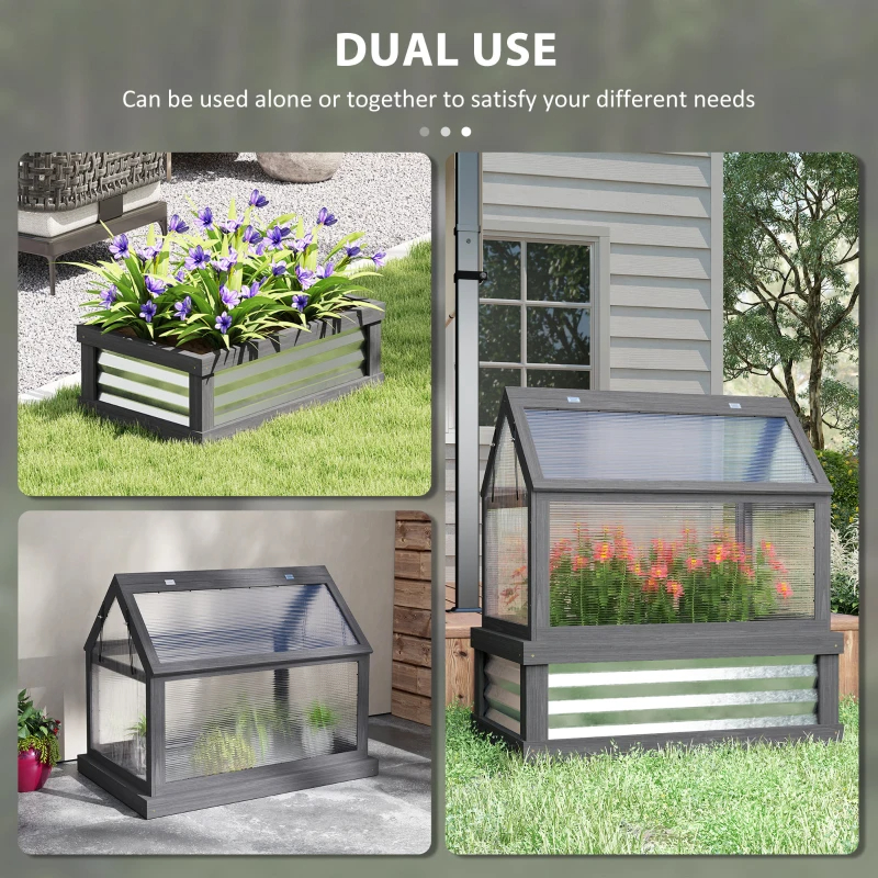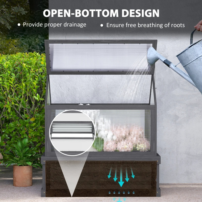 Outsunny Raised Garden Flower Bed Kit With Greenhouse, Wooden Cold Frame Planter