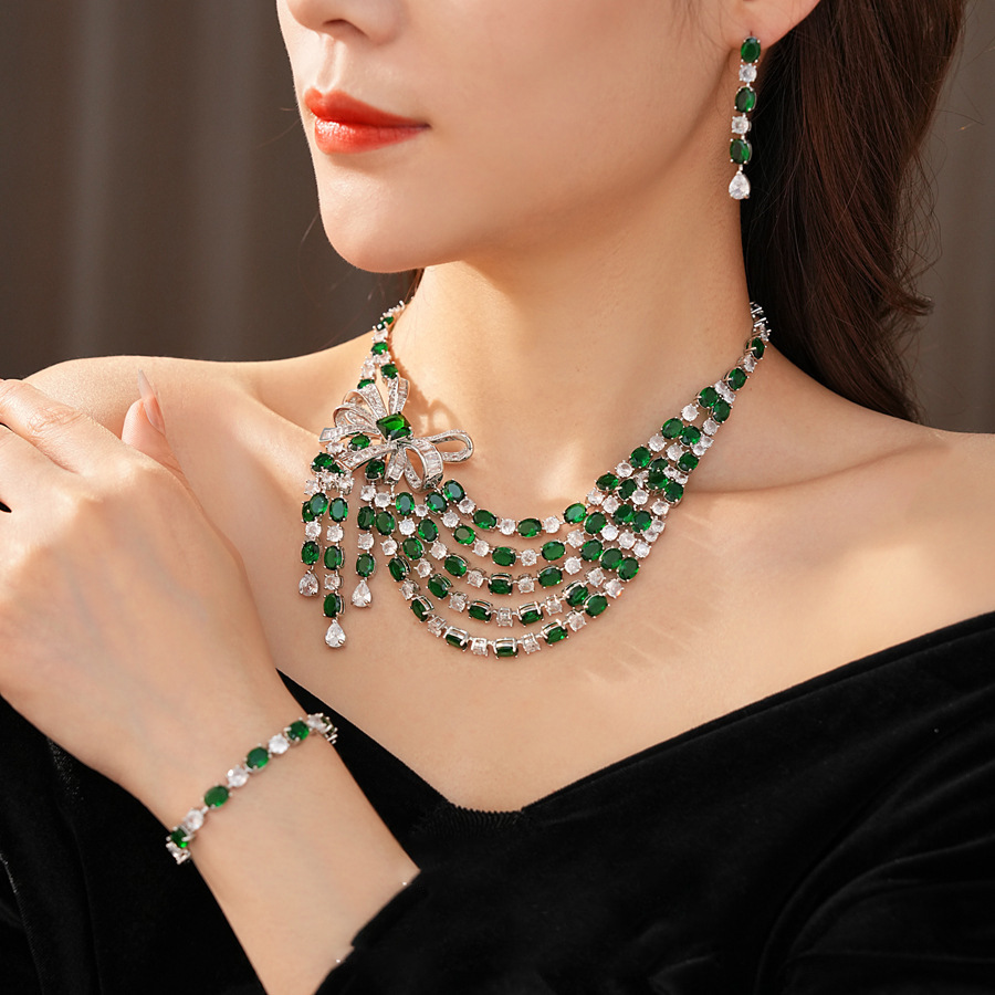 Color: Bracelet - Silver - Green - Oval, Necklace - Silver - Green - Oval, Earring - Silver - Green - Teardrop