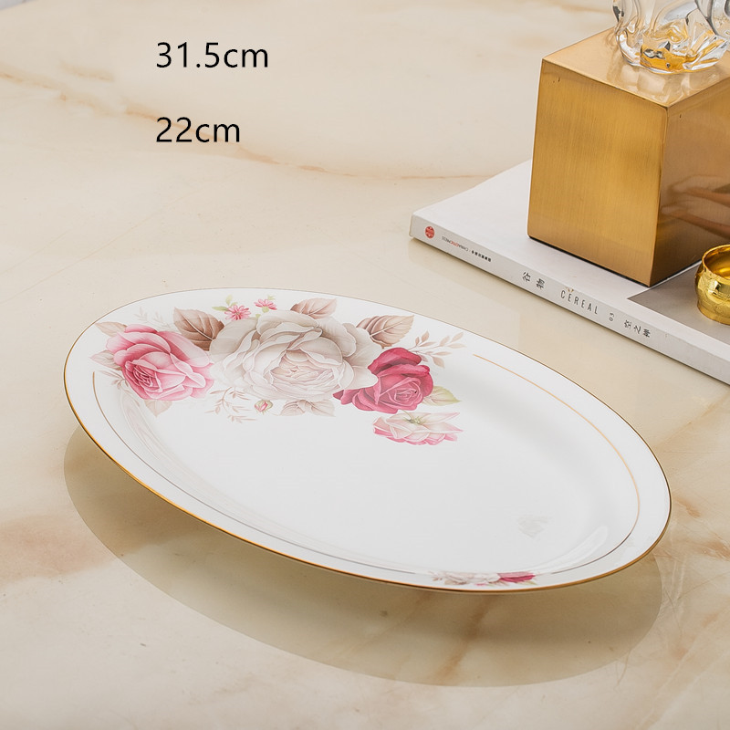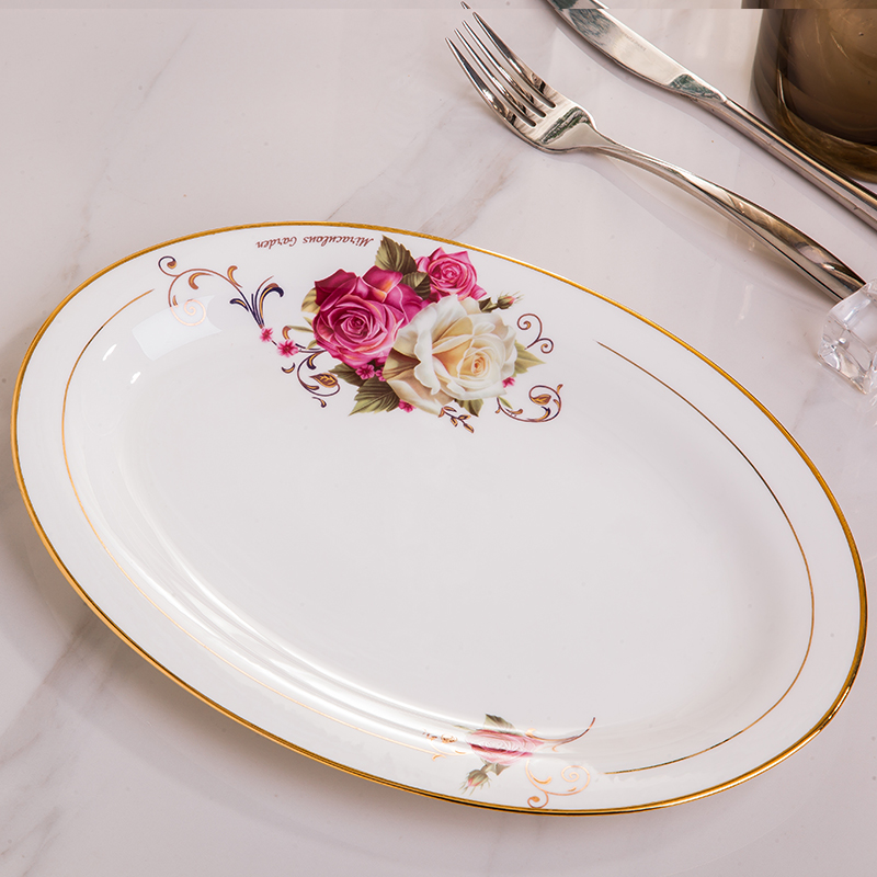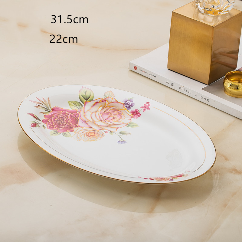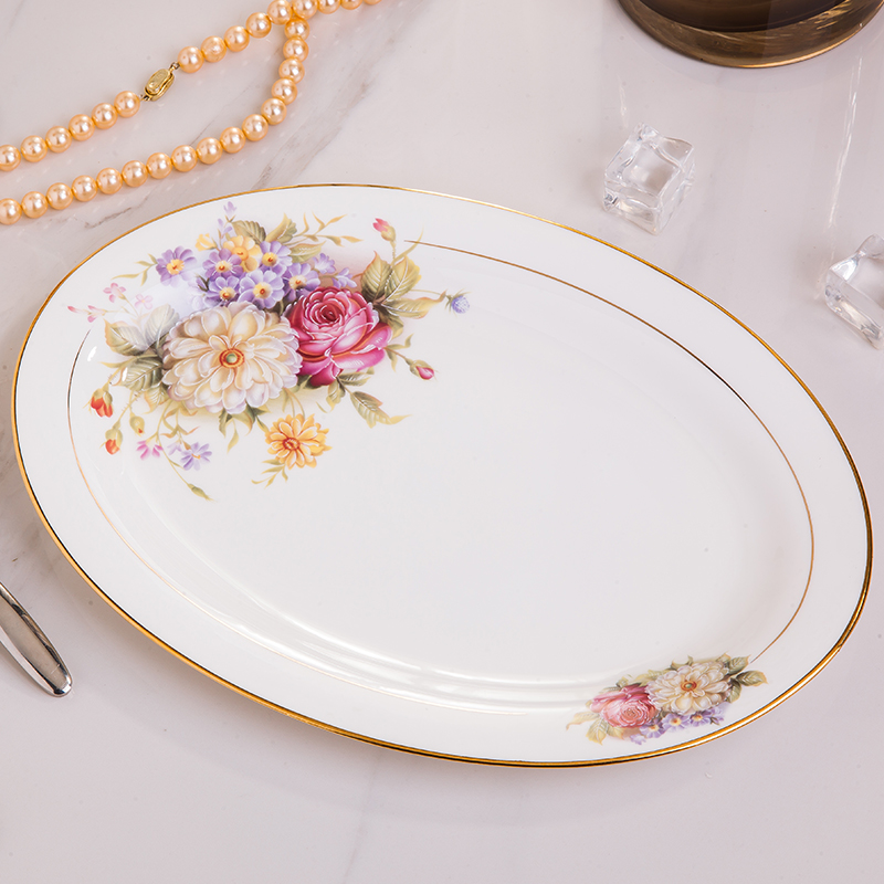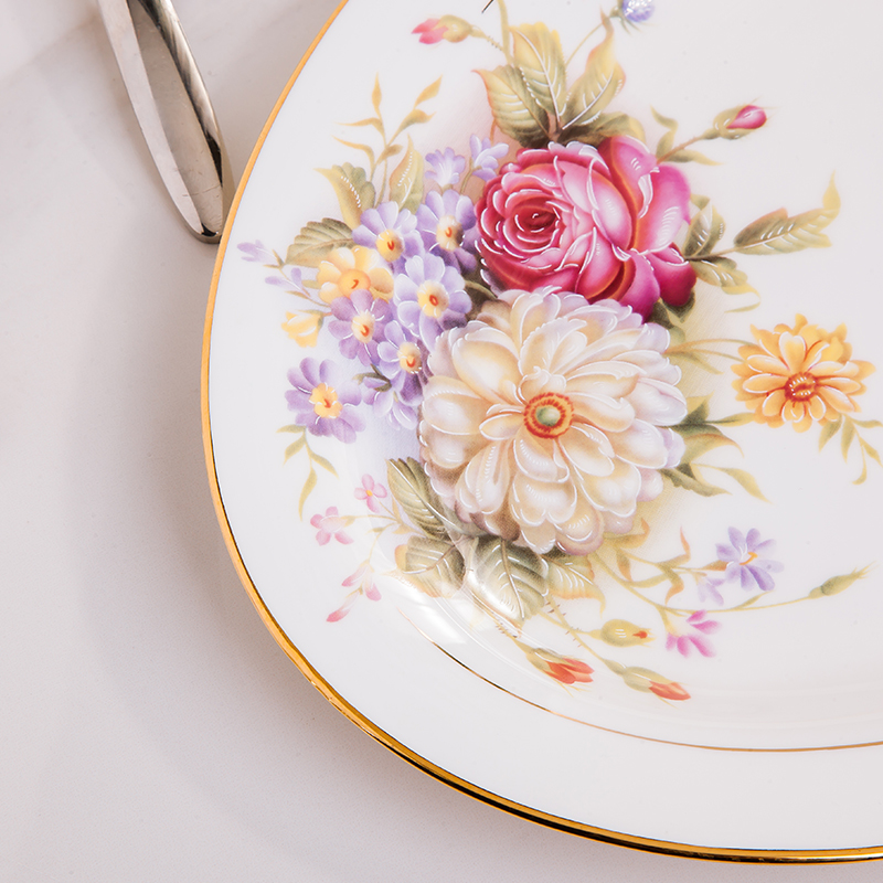 E: Romantic flower and sea fish plate with gold tracery (1 piece)