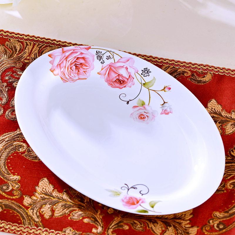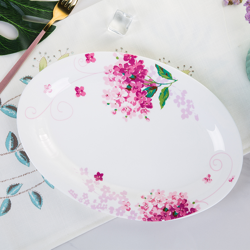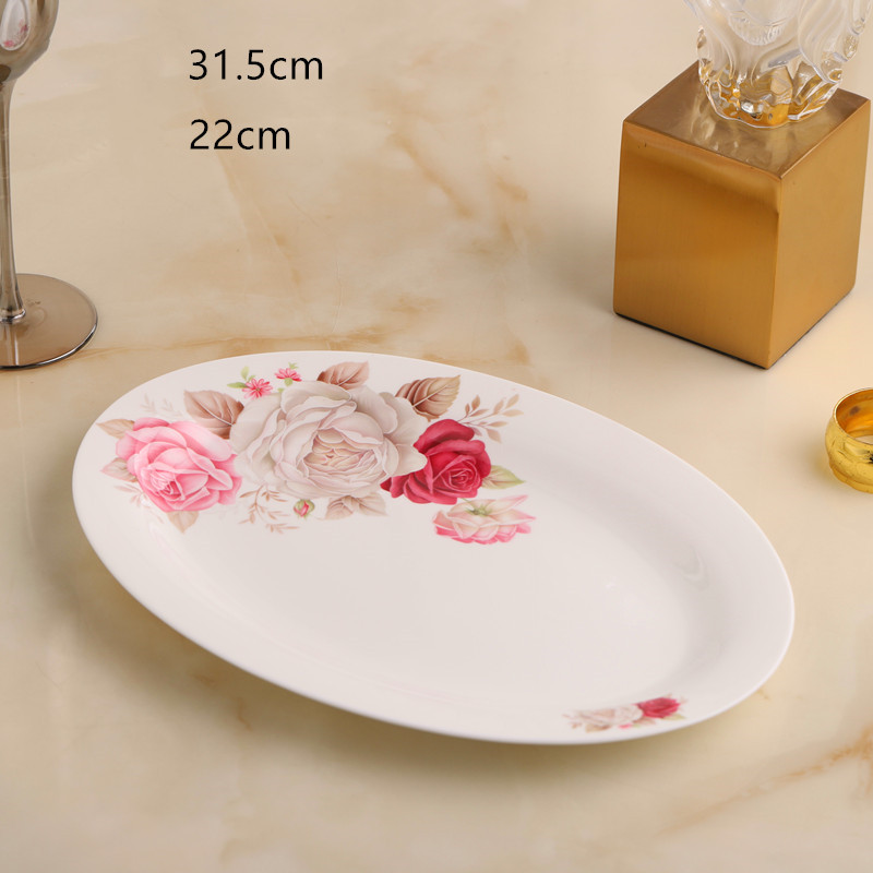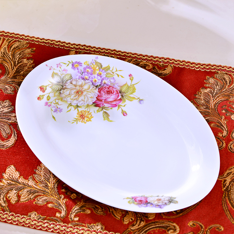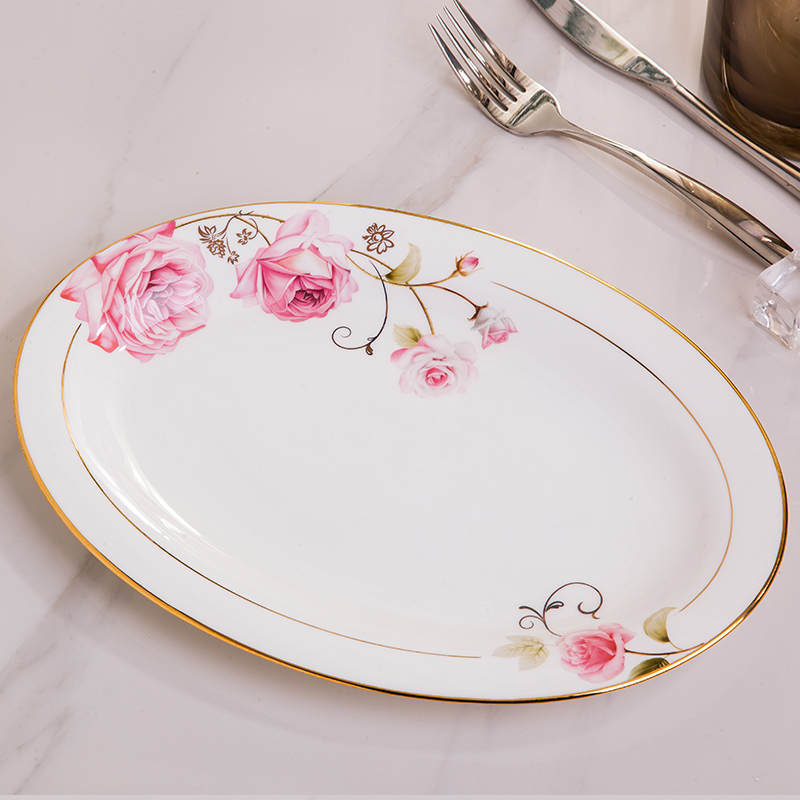 E: Romantic flower and sea fish plate with gold tracery (1 piece)