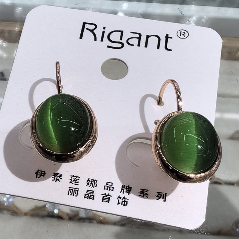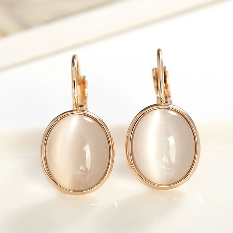 Oval Opal Earrings Simple Versatile Personality Electroplating