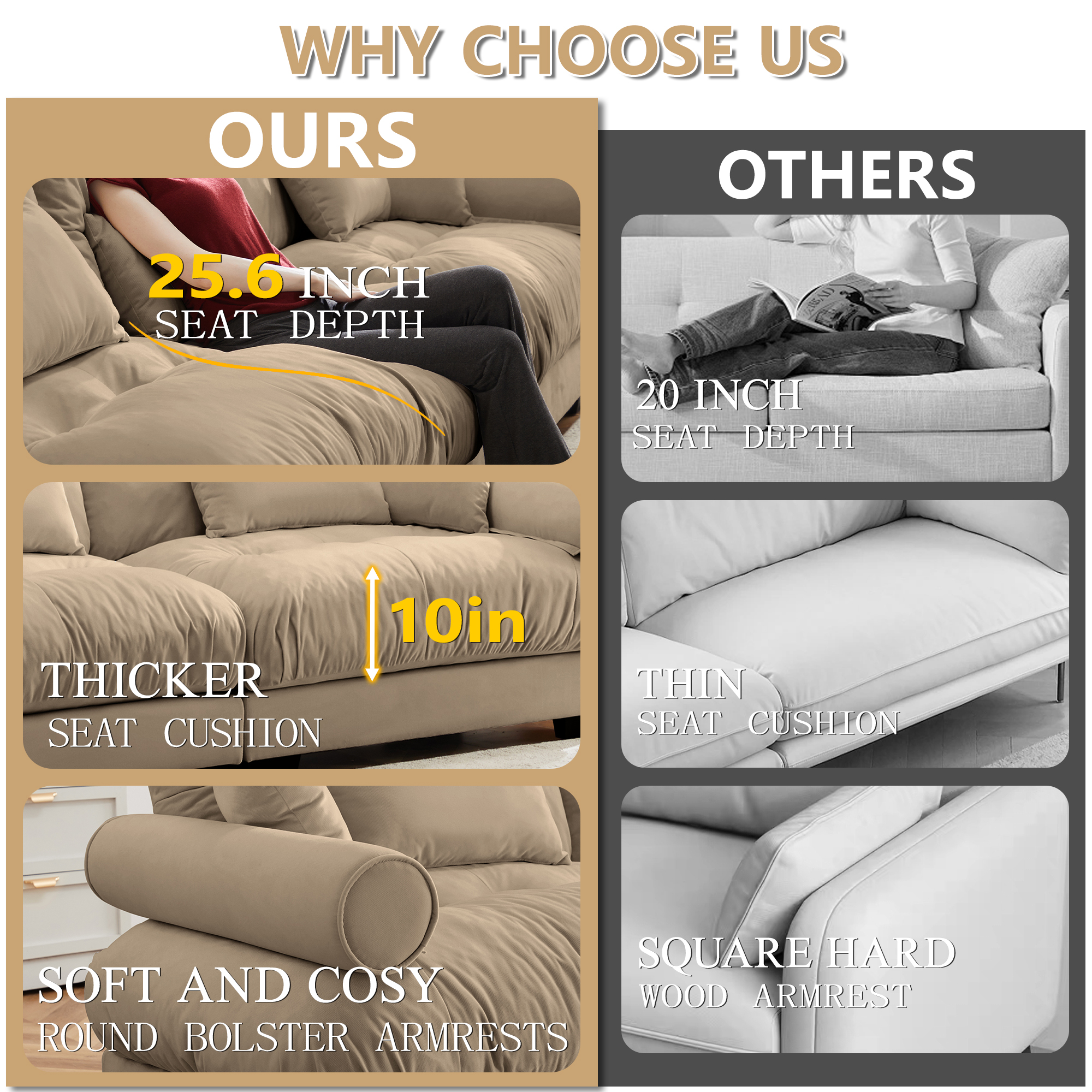 - Sitting on a cloud - cloud look seat cushions without spring or wood inside, offers excellent support and elasticity for your body. Deep seat offers extra support and waist comfort. With throw pillows and waist pillows provide you extra support. You can sit down and feel the dorm couch backrest fit and support, enjoying unparalleled comfort. Whether you're watching TV, reading books, or chatting with family, this sofa will provide you with the ultimate comfortable experience.