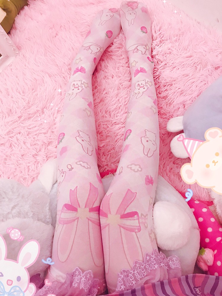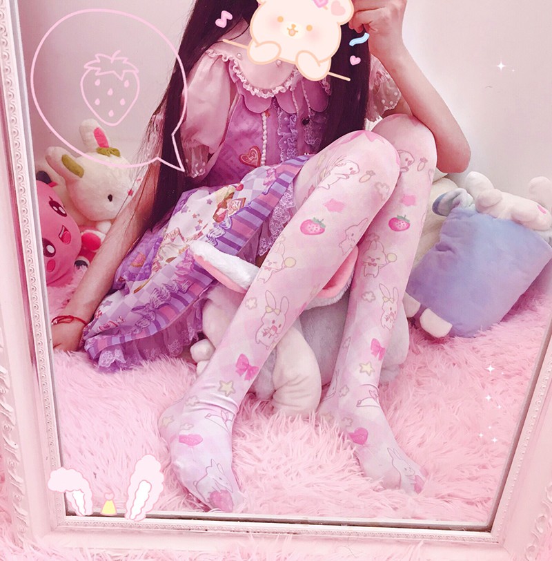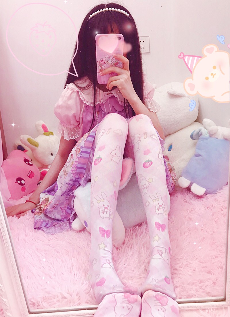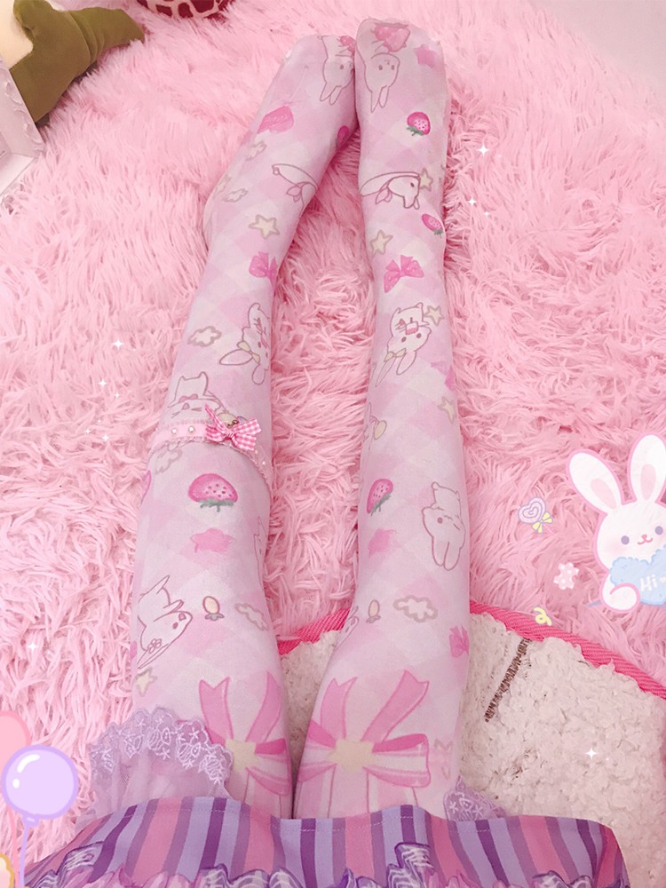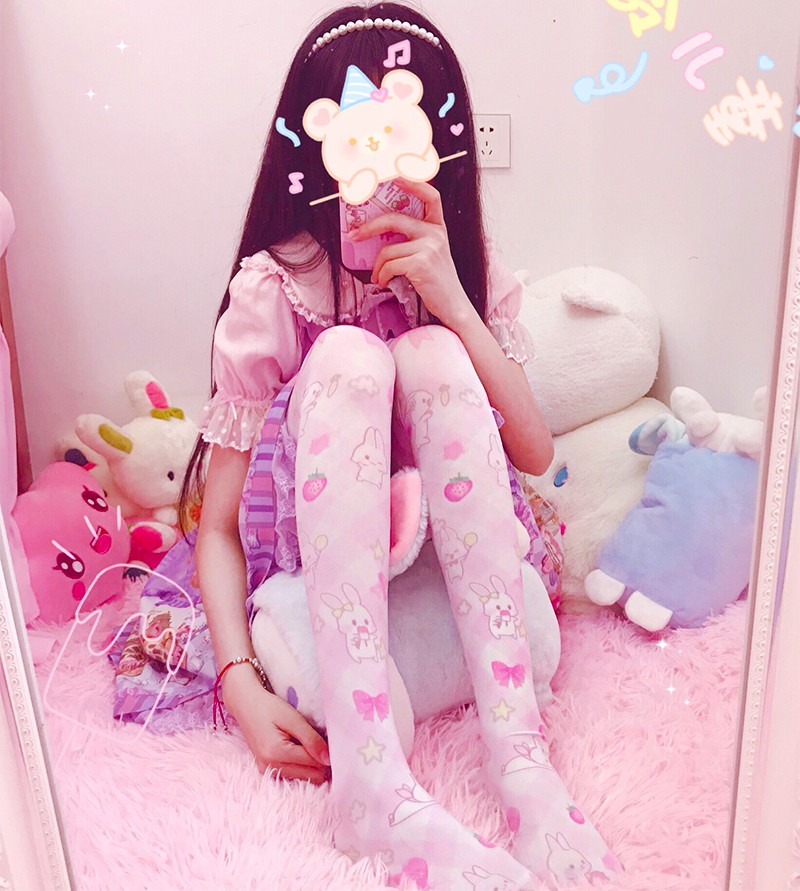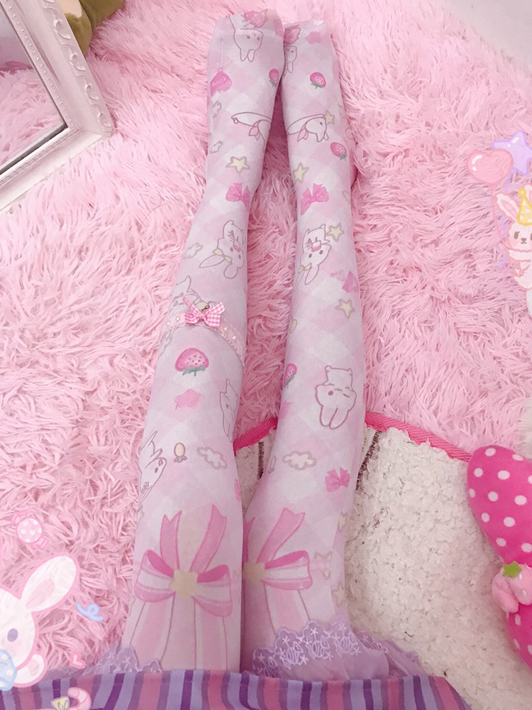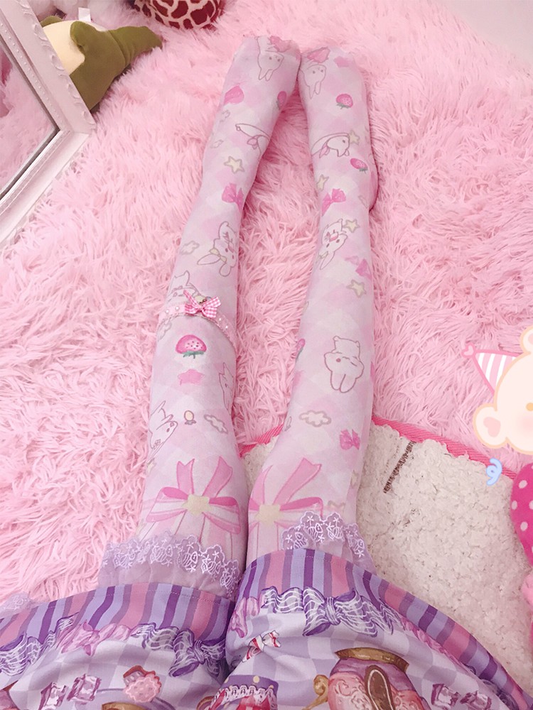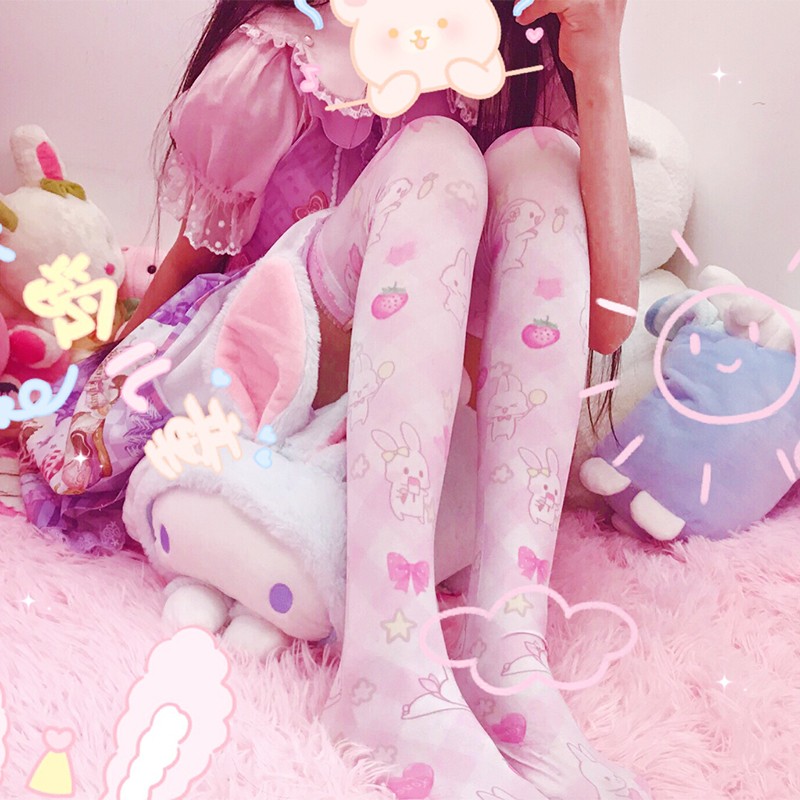 Japanese Lolita soft sister Lolita printed silk socks lo mother over the knee long high tube female cute summer thin section