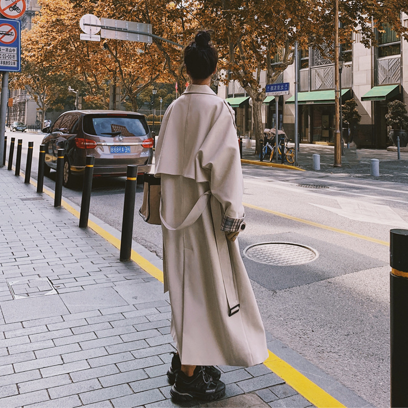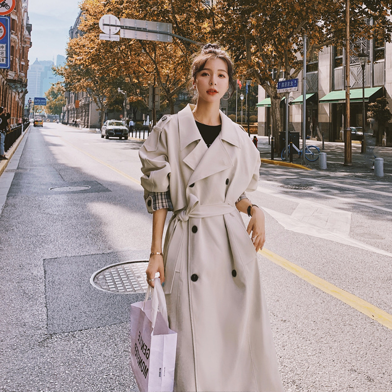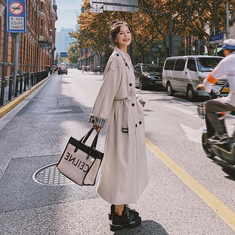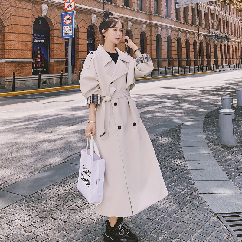 Over-the-knee Loose All-match Popular Temperament Plaid Stitching Jacket