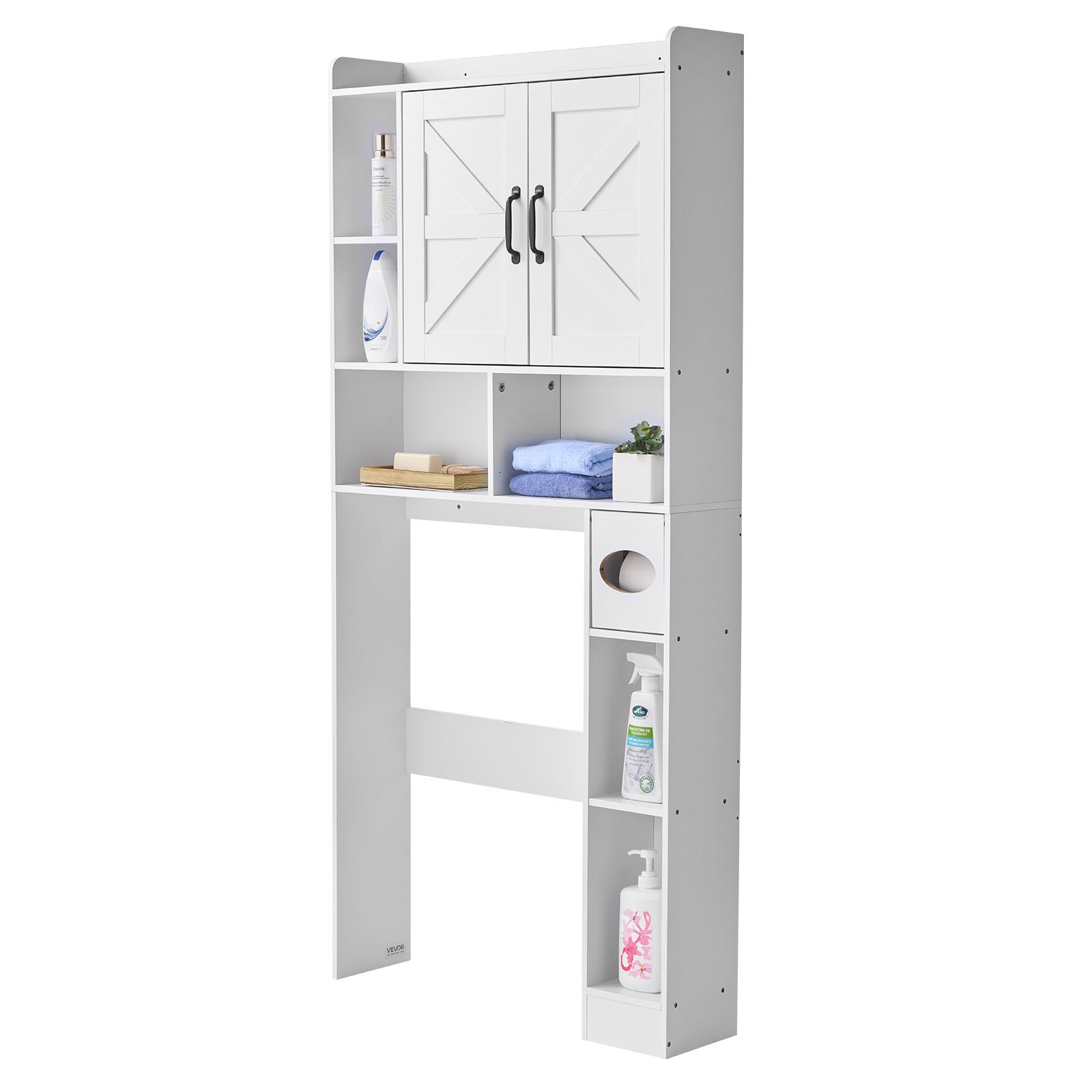 Multi-Tier Storage: This over the toilet cabinet provides multiple tiers to make full use of the space above your toilet. Easily store toiletries, towels, and more. The combination of closed doors and open shelves keeps items private yet accessible