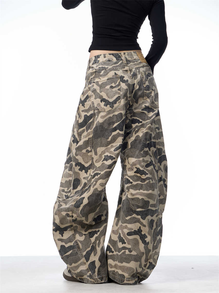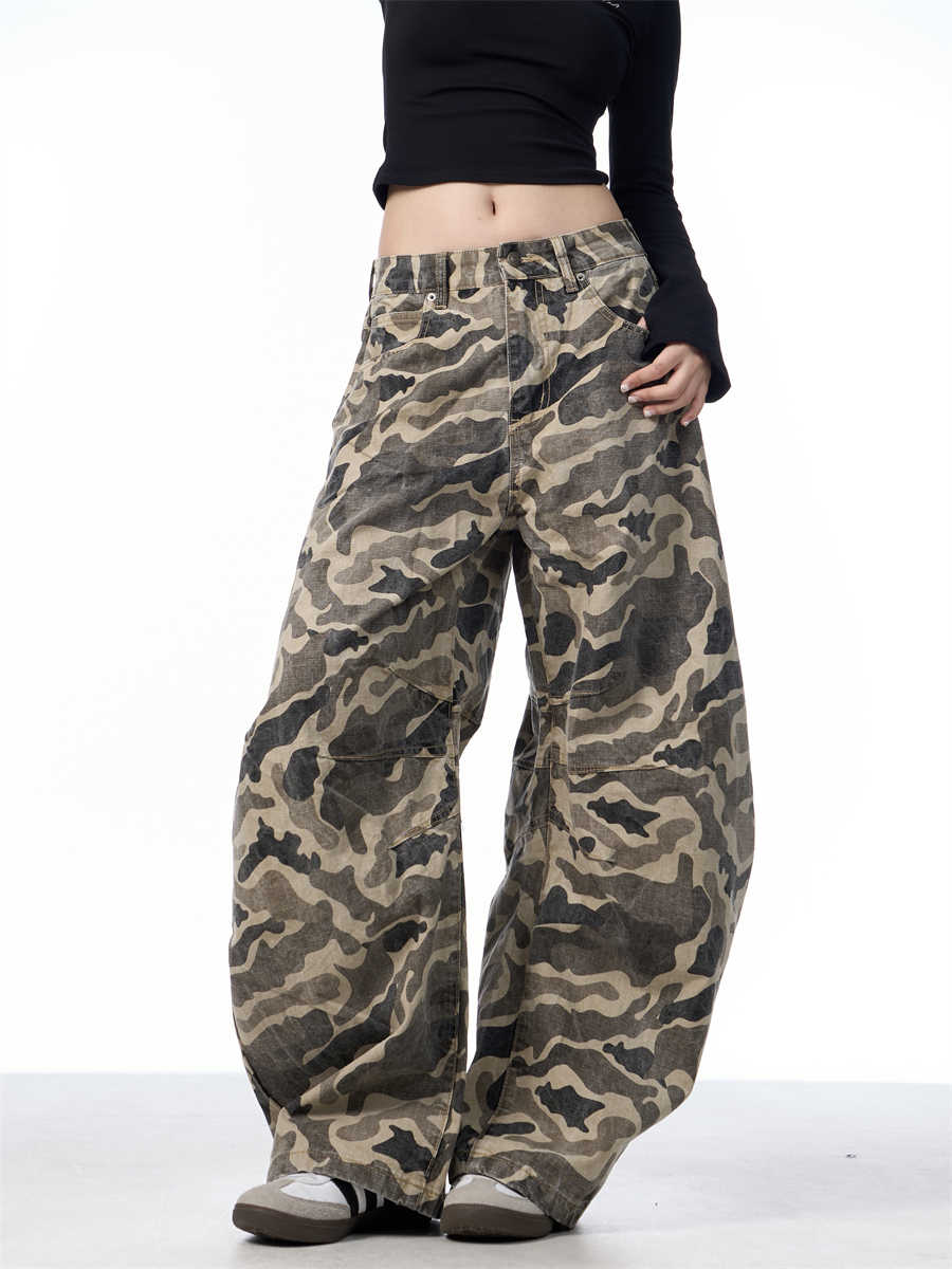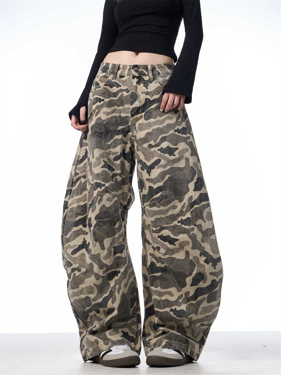 Overalls Wide-leg Pants Women's Washed Camouflage Couple Pants