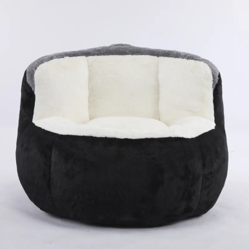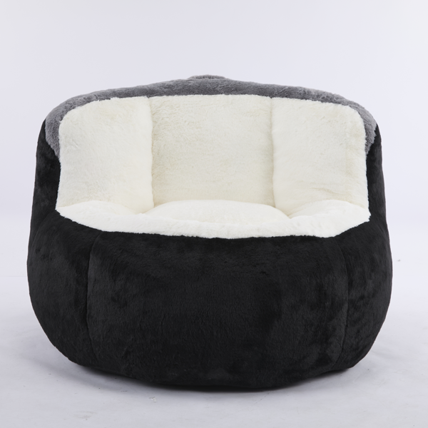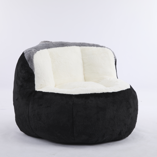 Oversized Bean Bag Chairs,Multicolor Faux Fur Couch Filled With Shredded Sponge,Large Lounger Sofa For Living Room,No Assembly Required , Black+White+Grey