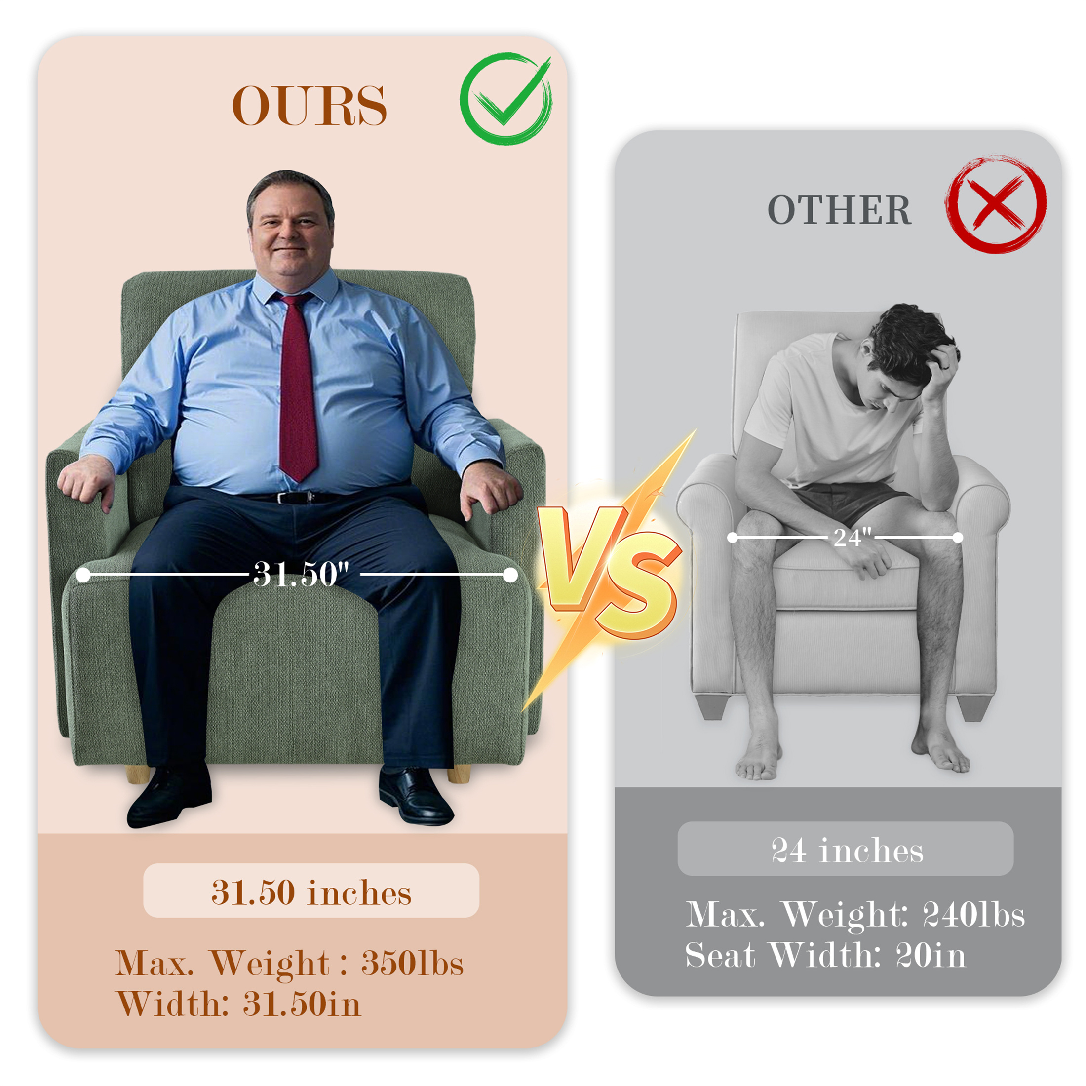 • 【Sturdy Long-Lasting Wood Frame】Engineered with a reinforced wooden frame and solid wood leg, this armchair delivers exceptional structural integrity. High-density foam strategically pads the backrest, armrests, and seat to maintain supportive comfort through years of daily use. The modern accent chair’s reinforced framework comfortably accommodates up to 350lbs, while its intelligently scaled dimensions (35.03"W × 33.46"D × 33.46"H) suit diverse body types – perfect for relaxation!