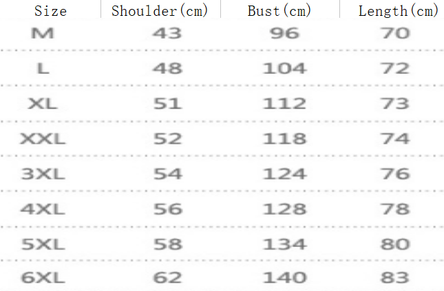 Size: L, XL, 2XL, 3XL, 4XL, 5XL, 6XL