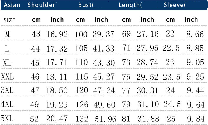Size: M, L, XL, 2XL, 3XL, 4XL, 5XL