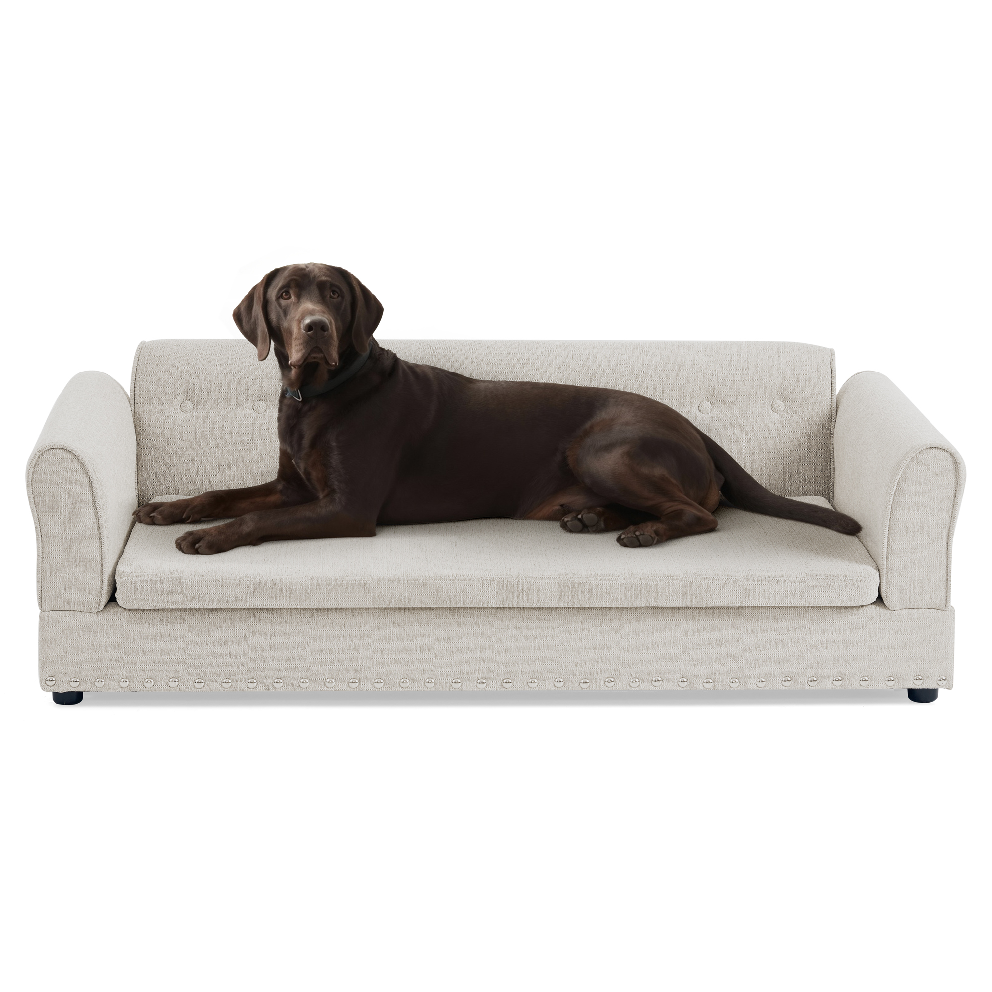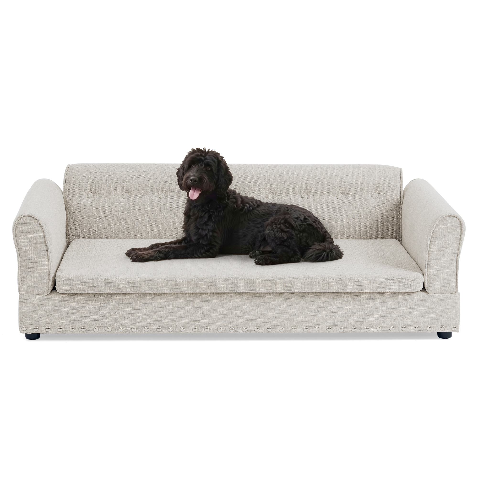 Product Name:Oversized Pet Sofa ,Elegant Modern Linen Fabric Elevated Dog Sofa Bed, Comfortable Oversized Rectangular Pet Bed with Backrest & Armrest for Large & Oversized Dogs-Beige