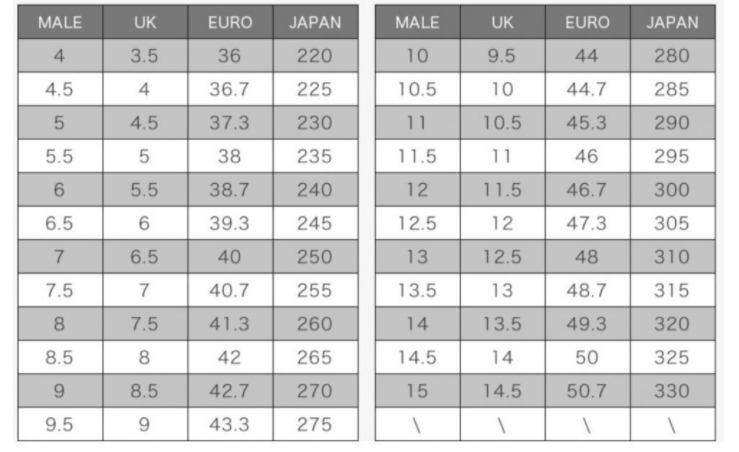 Size: 38, 39, 40, 41, 42, 43, 44, 45, 46, 47, 48