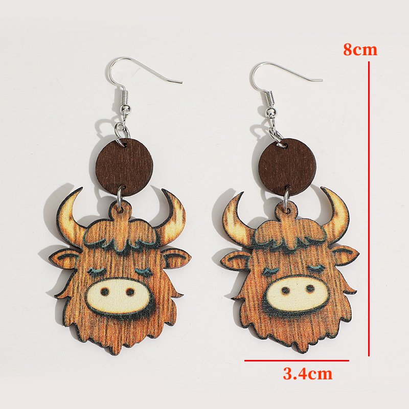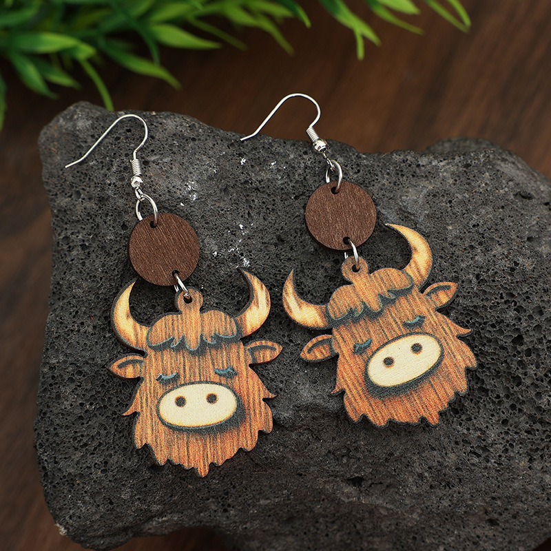 Product information:Processing Method: Printing Target Audience: Women Material: Wood Shape: Animals/Zodiac Signs Trendy Element: Cow