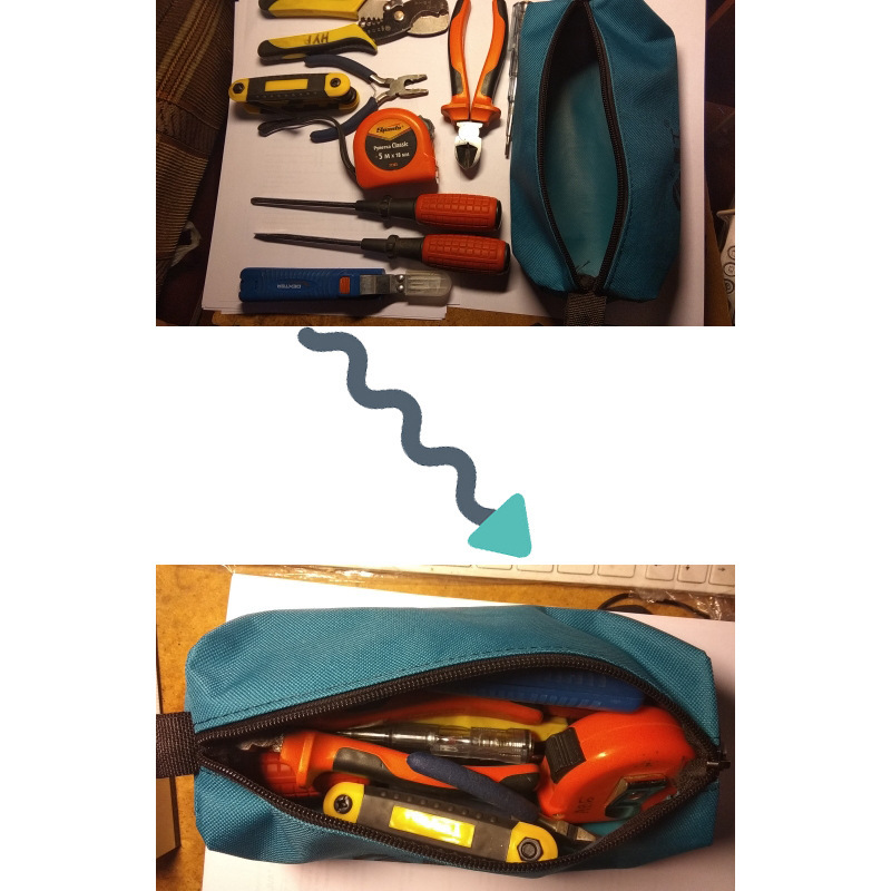 Specification:Main purpose: Maintenance toolsPlate: PE boardMaterial: Oxford clothStyle: Electrician waist bagPacking list: Toolkit x1