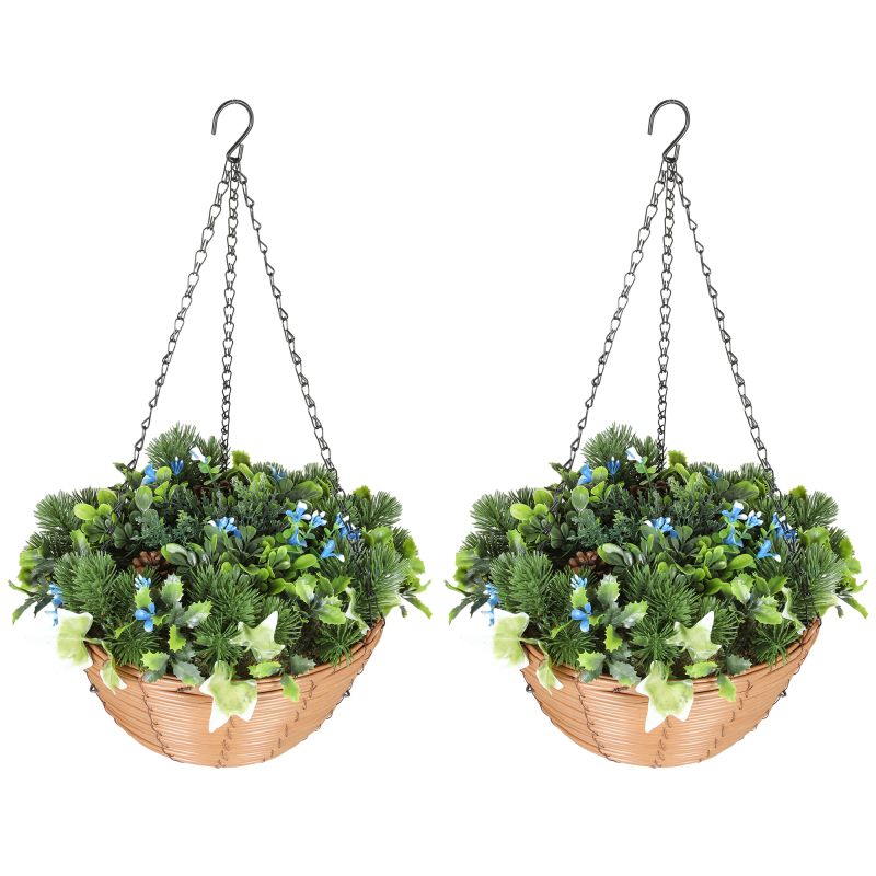 Tired of constantly watering and caring for plants, or finding beautiful decor too expensive? Real plants demand constant effort and budget. Discover the effortless beauty of artificial hanging plants. This two-piece set offers stunning, realistic artificial flowers with nine plant types, including blue flowers and green leaves, transforming your home with a lively, natural atmosphere without any maintenance, saving you precious time.