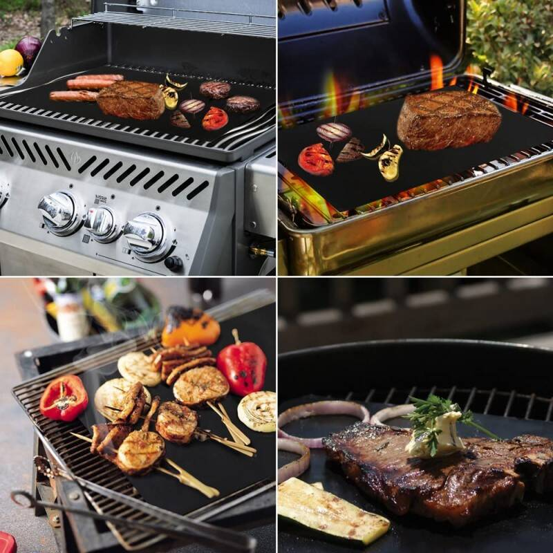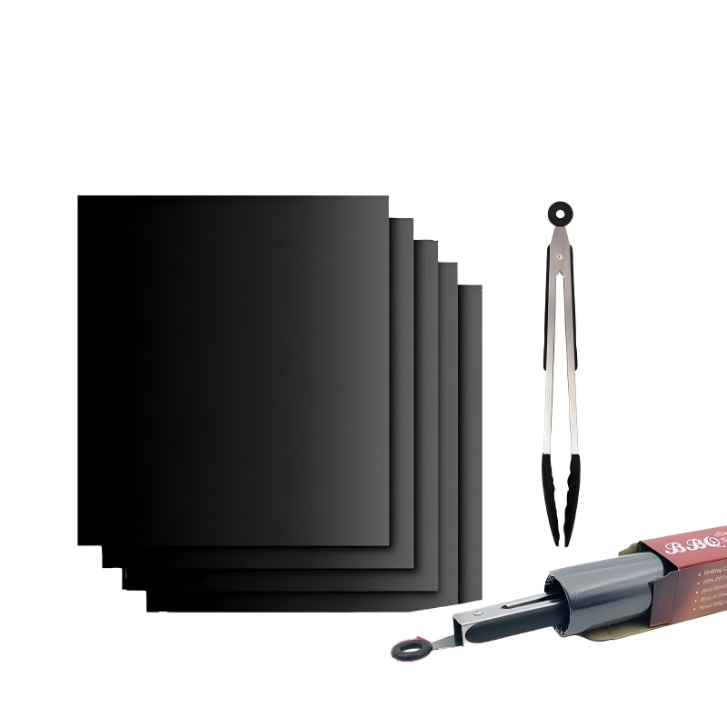 Pack of 5 oven liner with Bonus 12"" Silicone Tongs, Universal oven liners for fan assisted ovens & oven liners for Bottom of Oven, Thick 2mm Durable oven liners, Multi-use bbq mats for gas grill reusable & bbq mats for BBQ and Oven