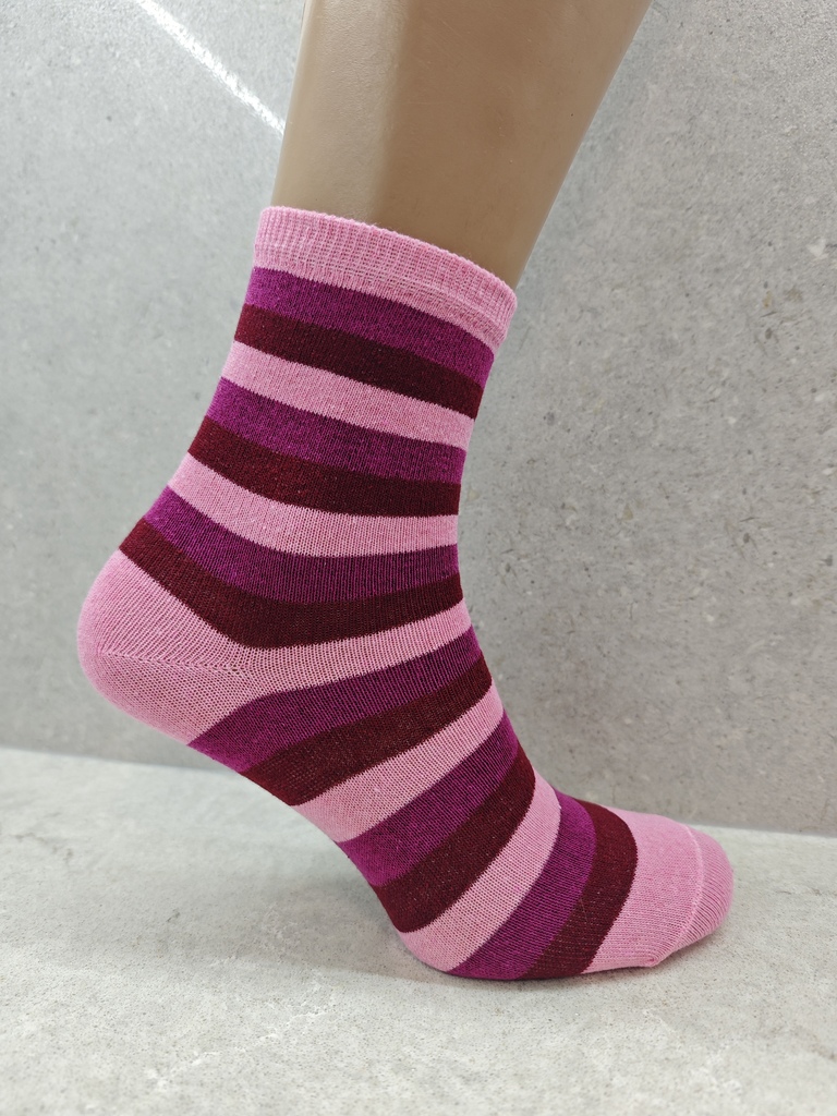 A pack of 6 / 12 / 24 pairs of high-quality women’s cotton socks with colourful striped designs.