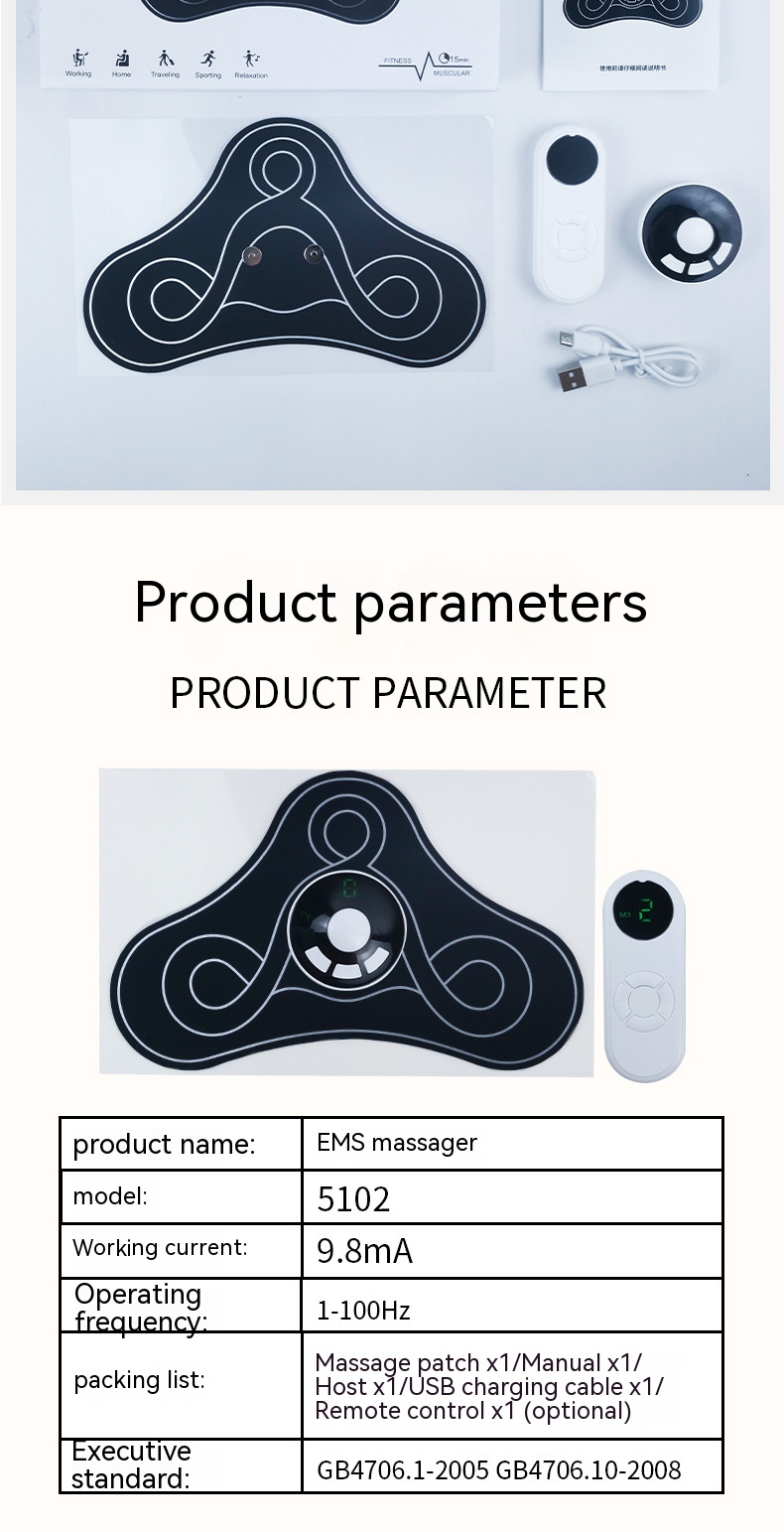 Massage sticker * 1+charging cable * 1+remote control * 1+Chinese manual * 1+packaging box * 1