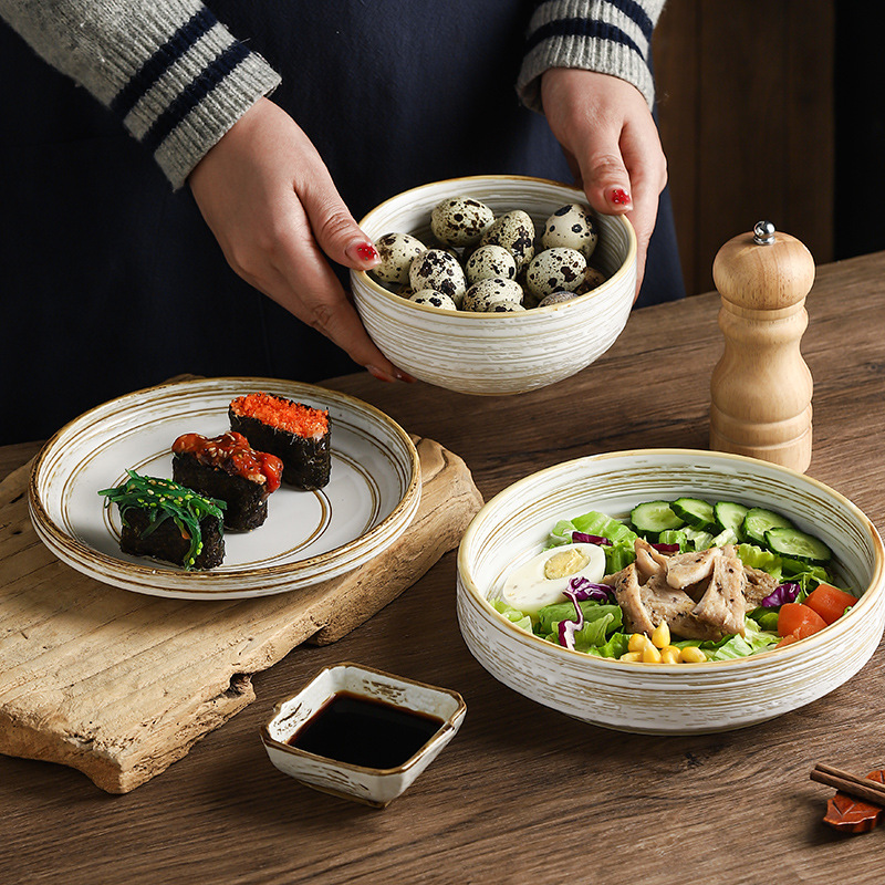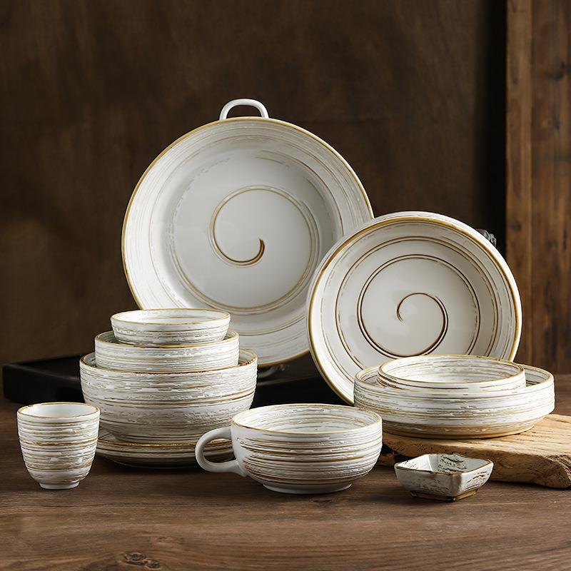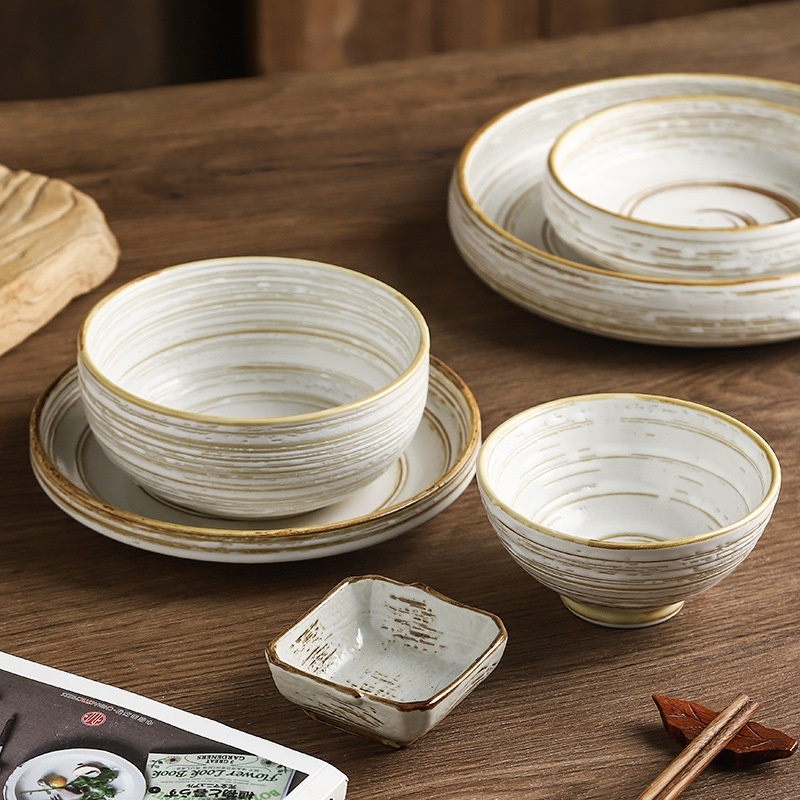 Color: line painting 4.5-inch rice bowl, line painting 3.5-inch square plate, line painting tea cup, line painting wide mouth noodle cup, line painting 5.5-inch noodle bowl, brushed 6.5-inch noodle bowl, brushed 5.5-inch deep plate (disc), wire drawing 7.5-inch deep plate (m Cup), thread stretching 8.5-inch deep plate (barrel plate), thread stretching 7-inch shallow plate (straight plate), thread drawing 11.5-inch double handle plate, wire drawing spoon