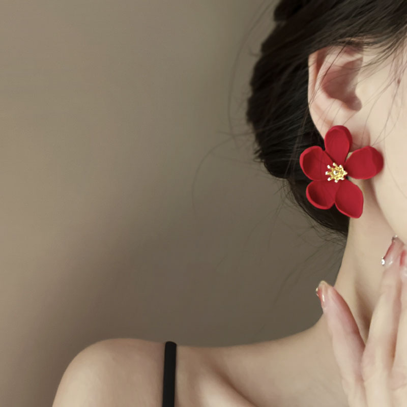 Product information:Treatment Process: baking varnish Color: red, gold Applicable population: Female Material: Alloy Shape: Flower