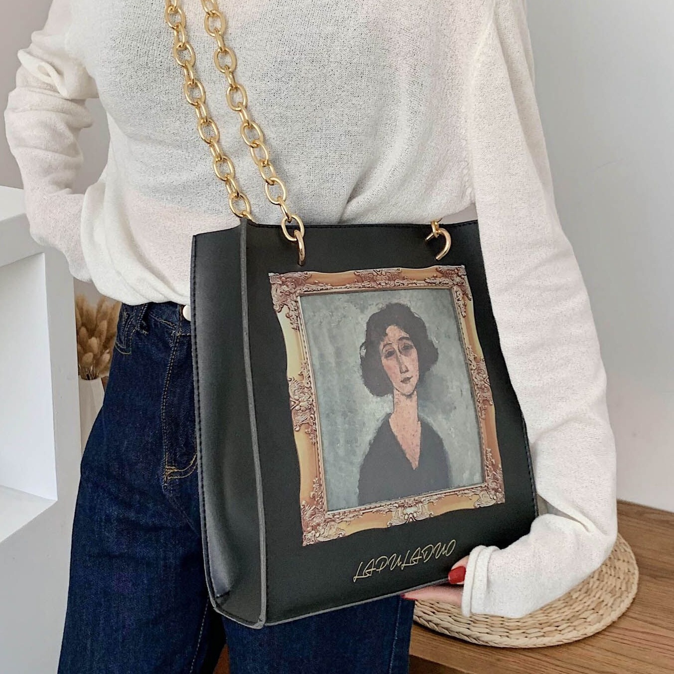 Painting Oil Painting Girl Literary Retro Large-Capacity Chain Bag