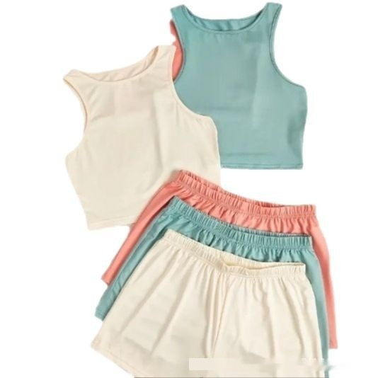 Pajamas Casual Suit Homewear With Braces Solid Color Short Sleeve Cute