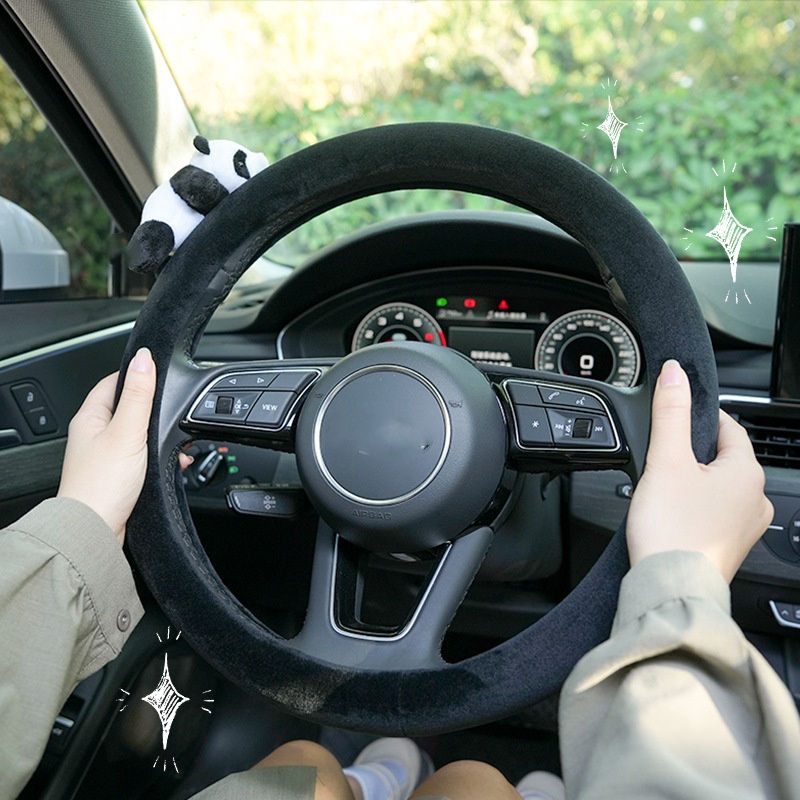 Color: plush black steering wheel cover stickers lying bear, plush black steering wheel cover, panda black shoulder pad, plush black shoulder pad