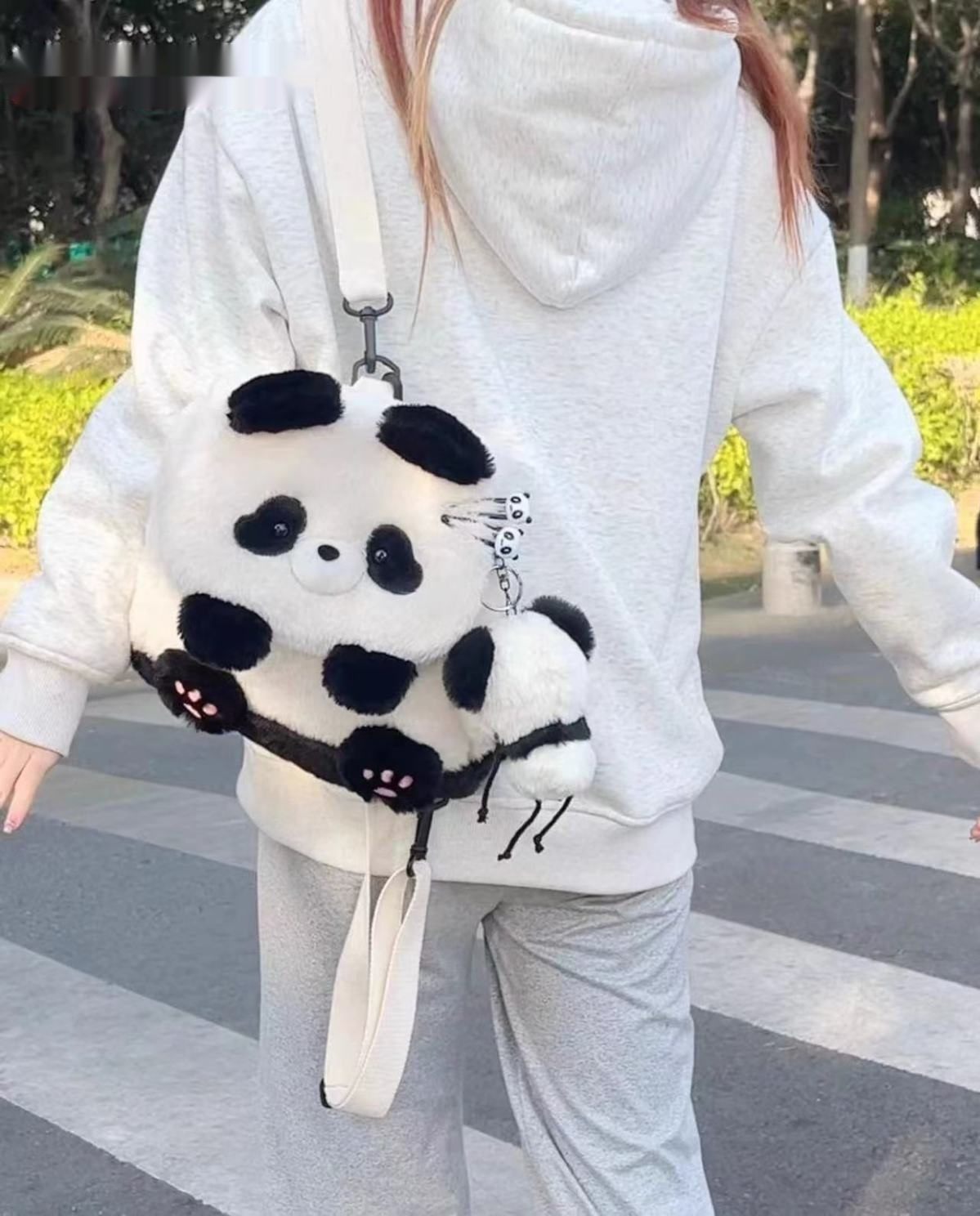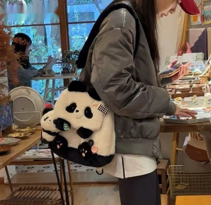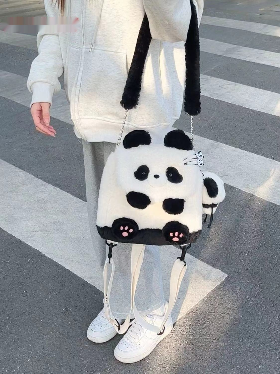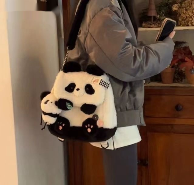 Color: panda holding bamboo flap bag, honey bee bear flap bag