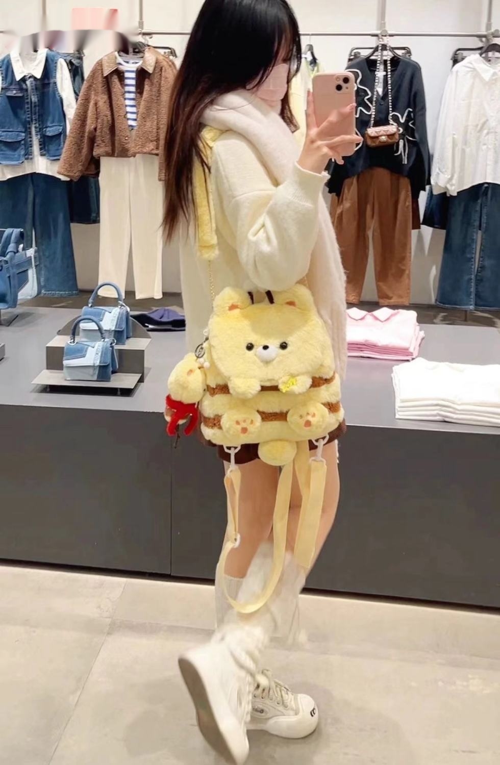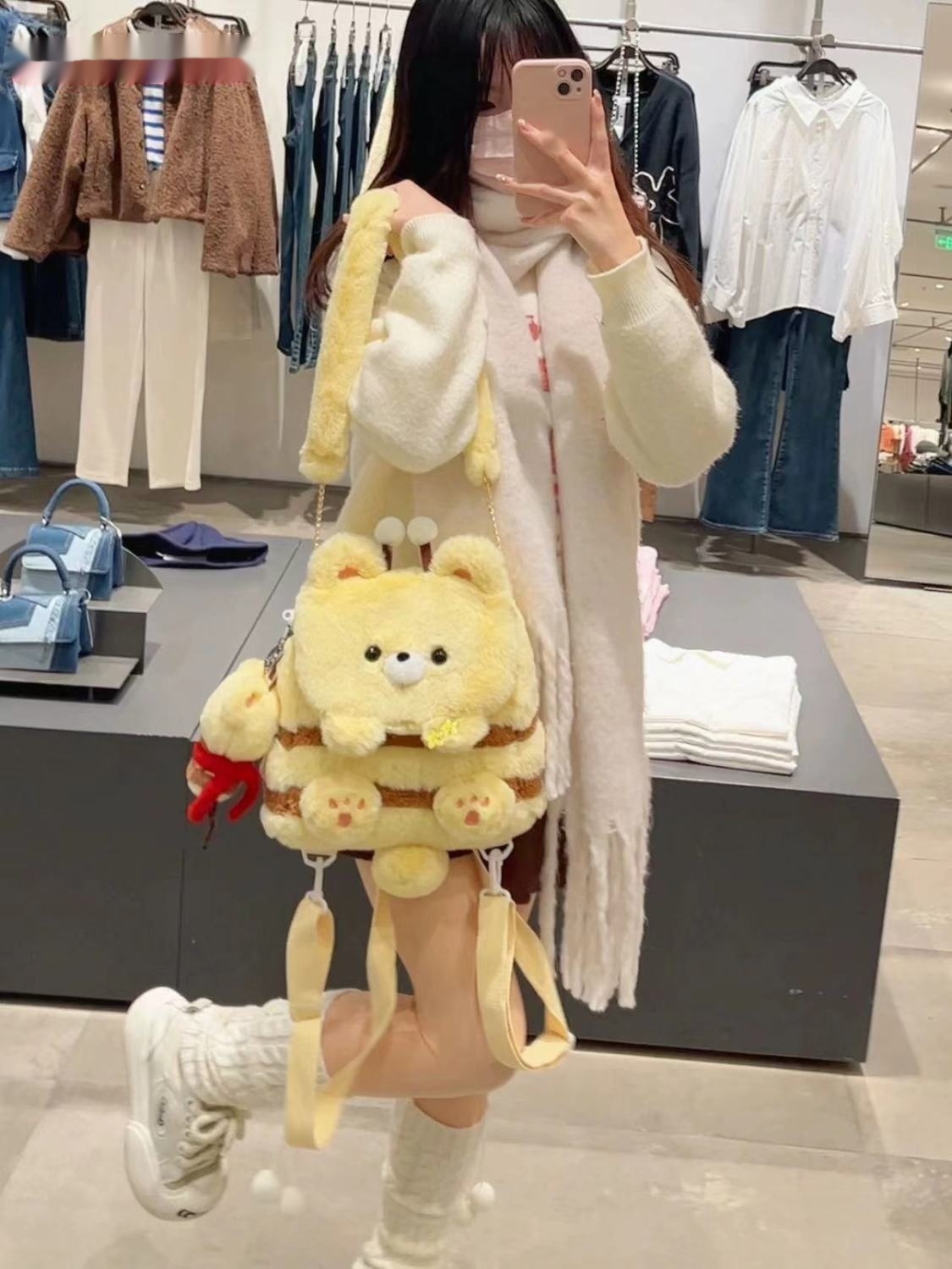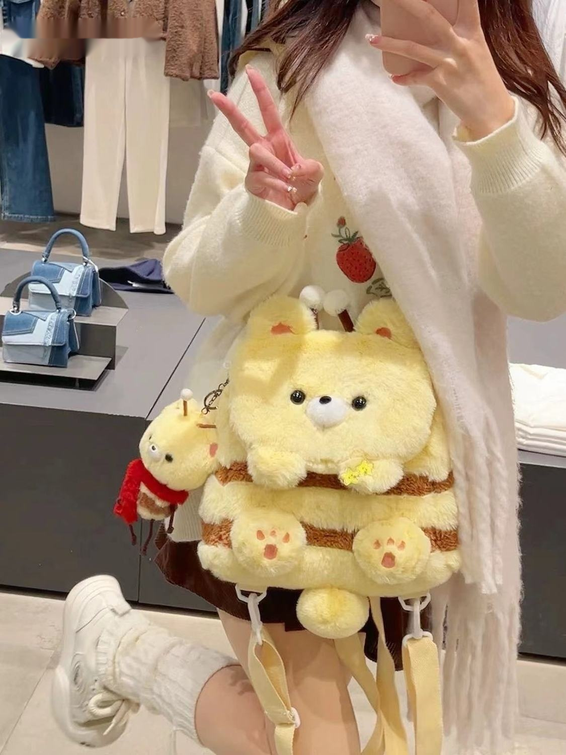 Color: panda holding bamboo flap bag, honey bee bear flap bag
