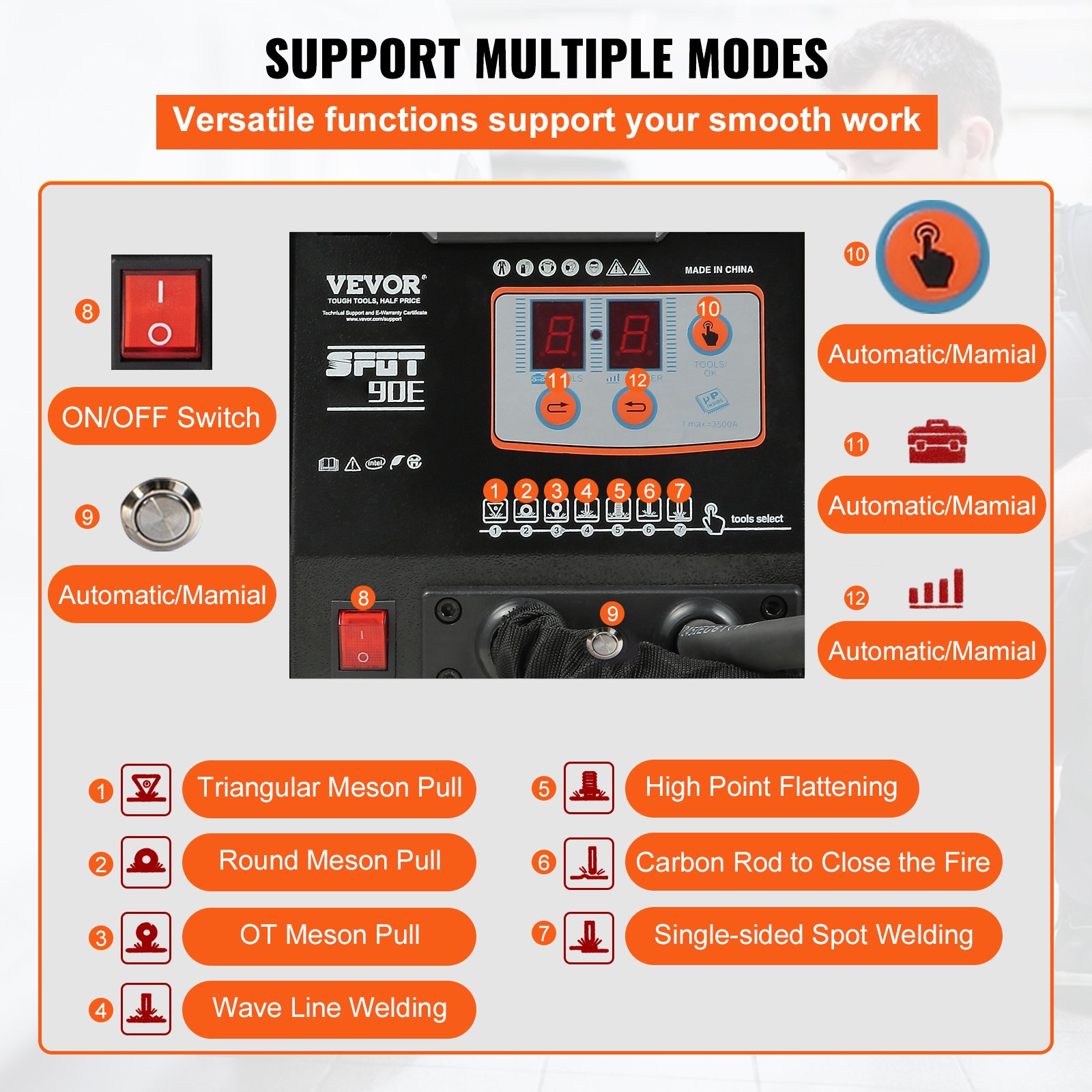 Panel Spot Puller 90E Vehicle Dent Spotter Multispot Bonnet Door Repair 3kw