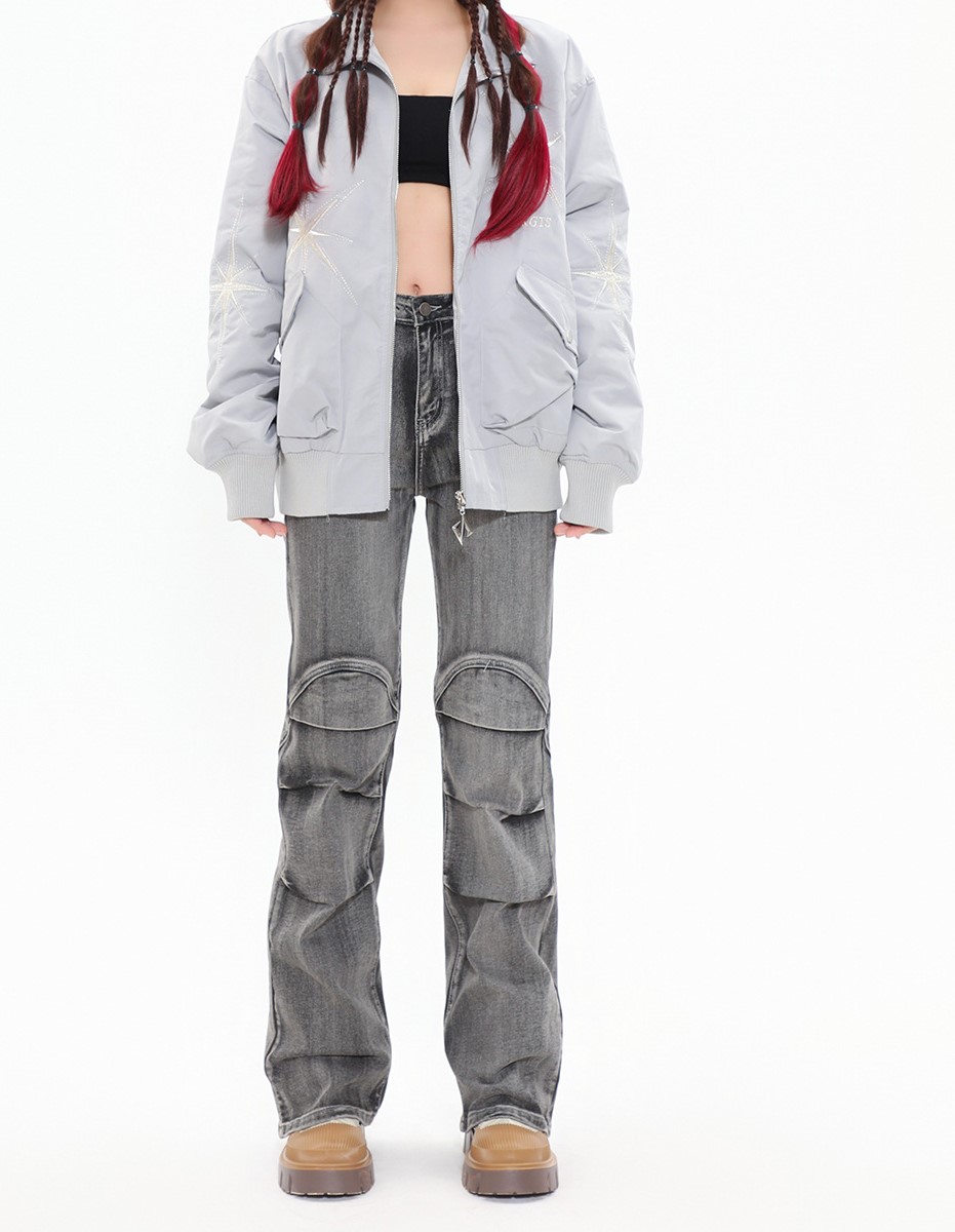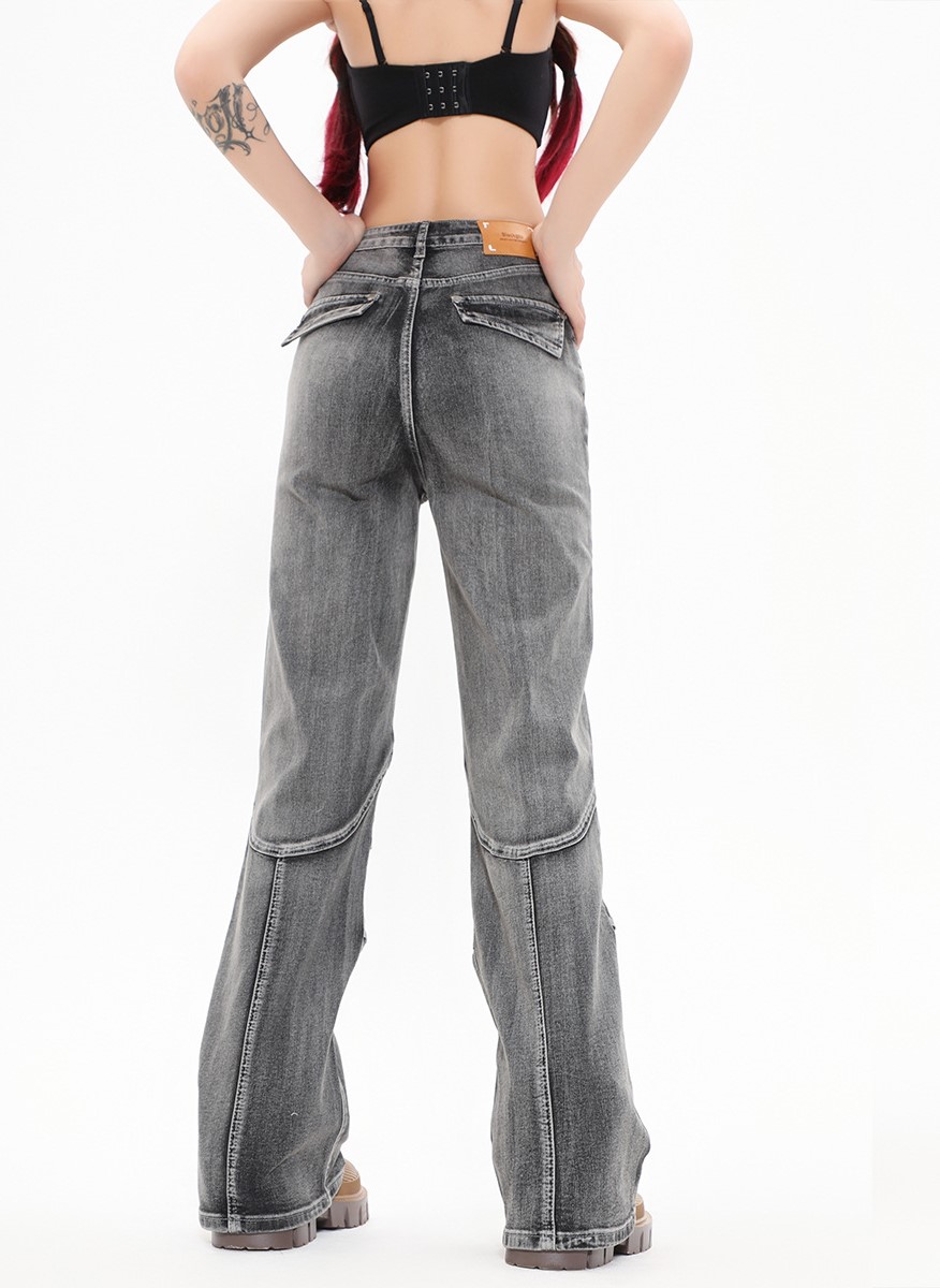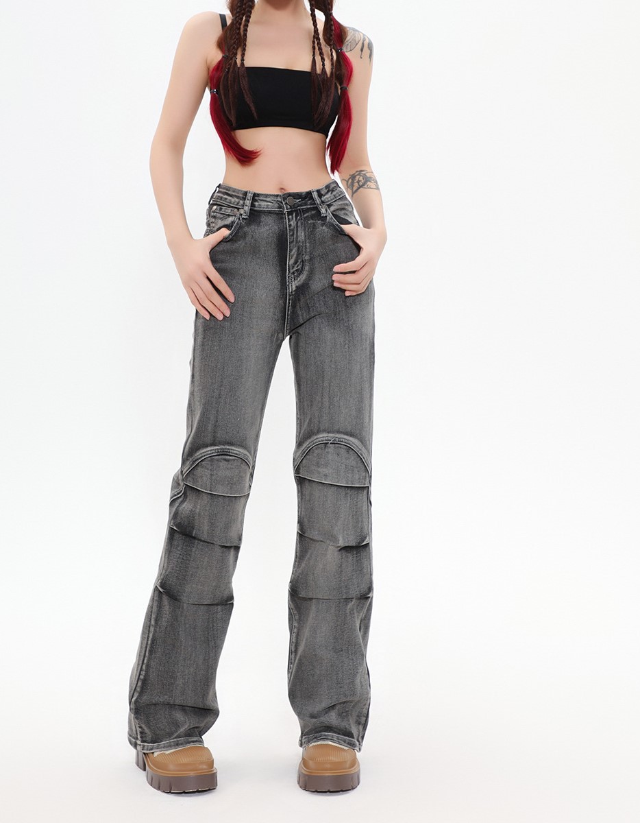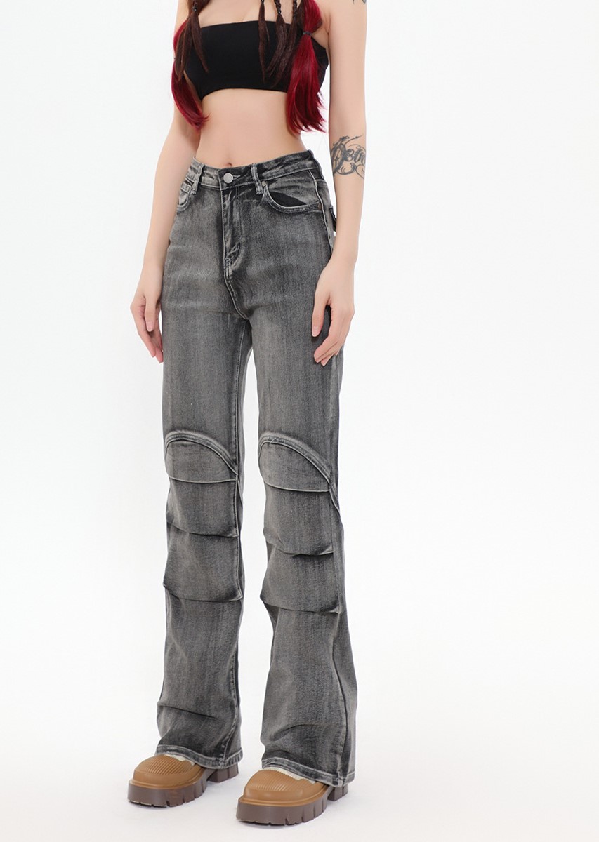Pants Fashion Brand Washed Old Pleated Slightly Flared Jeans
