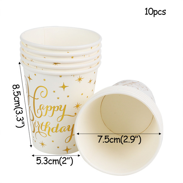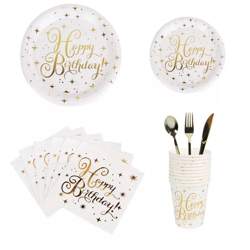 Type: paper cup, paper plate, napkin, knife, fork and spoon