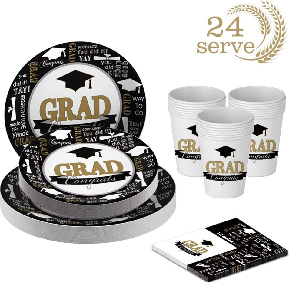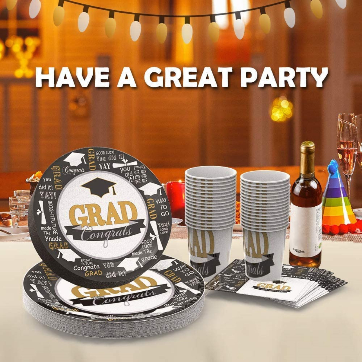 Size: 10 sets of graduation season, 16 7-inch plates, 16 9-inch plates, 16 paper cups, 20 tissues, 16 knives, 16 forks, 16 spoons, 1 flag, tablecloth 130*220cm, 25 black striped straws
