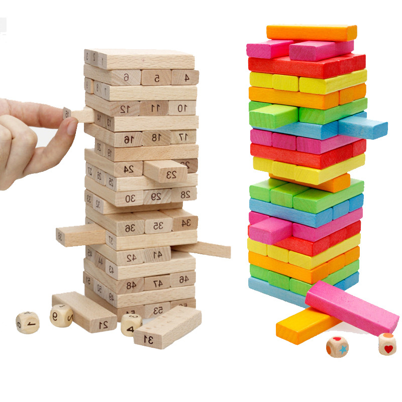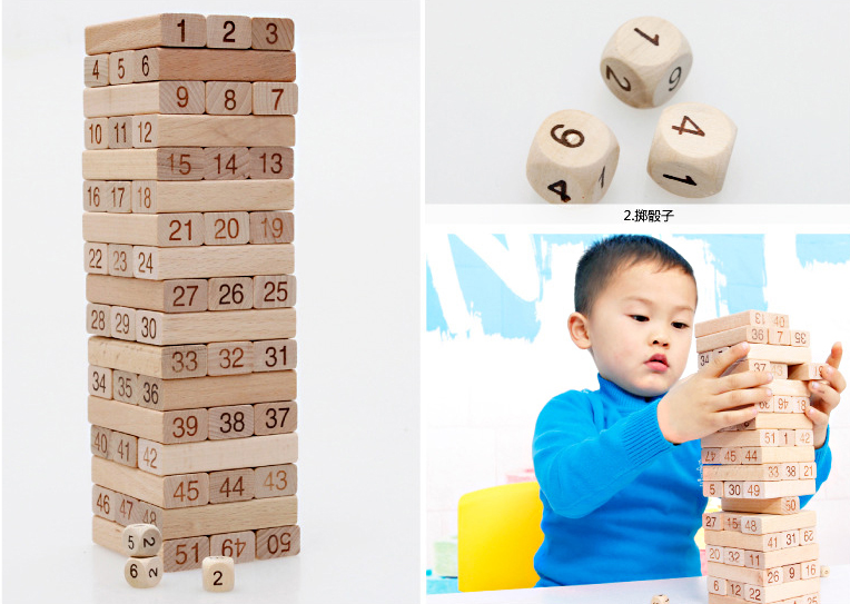 First of all, the three building blocks are one-layer, staggered and built into a tower.