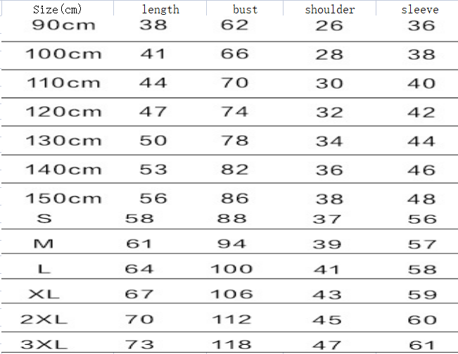 Size: Female S, female M, female L, female XL, female 2XL, female 3XL, children 90, children 100, children 110, children 120, children 130, children 140, children 150, men's S, men's M, men's L, men's XL, men's 2XL, men's 3XL,