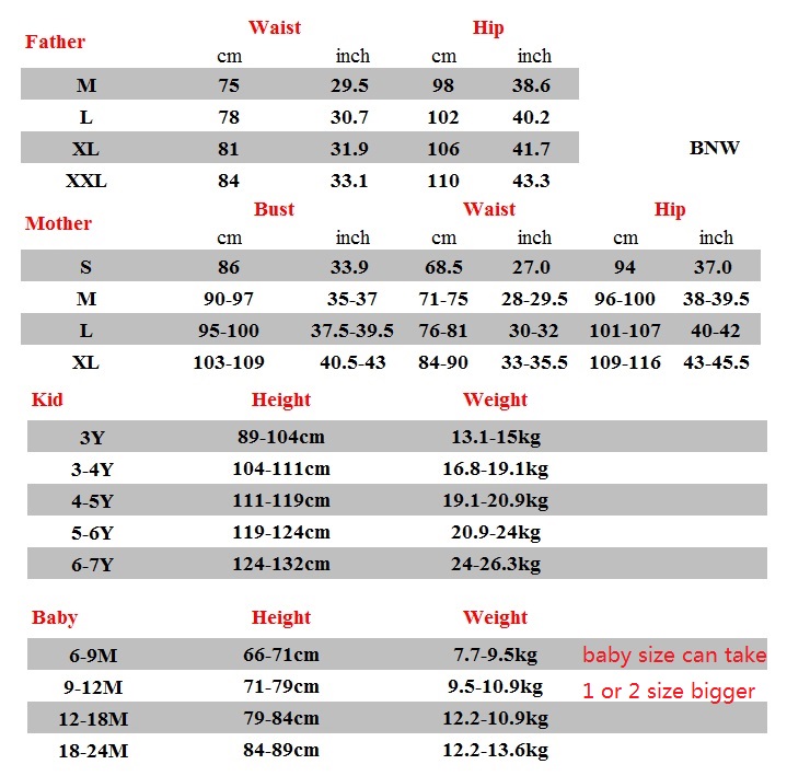 Suitable Height: BB: 6- 9M, BB: 9-12, BB: 12-18M, BB: 18-24M, Girls: 2Y, Girls: 3-4Y, Girls: 4-5Y, Girls: 6-7Y, Girls : 8-9Y, Boy: 2Y, Boy: 3-4Y, Boy: 4-5Y, Boy: 6-7Y, Boy: 8-9Y, Women: S, Women: M, Women: L, Women's: XL, Men's: M, Men's: L, Men's: XL, Men's: XXL