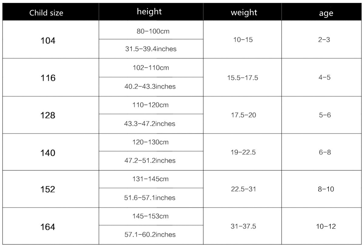 Size: S, M, L, XL, A (child 104), B (child 116), C (child 128), D (child 140), E (child 152), F (child 164)