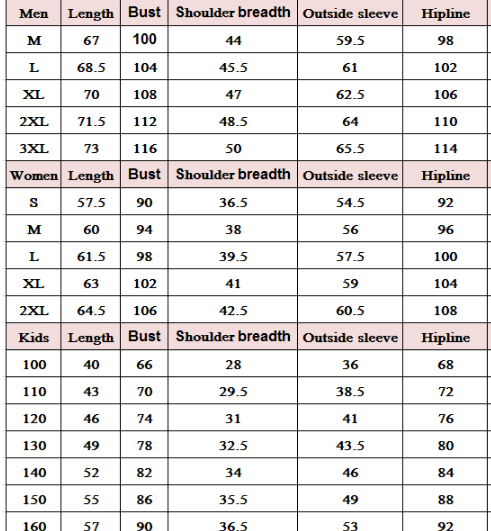 Tong 100, Tong 110, Tong 120, Tong 130, Tong 140, Tong 150, Tong 160, Mom S, Mom M, Mom L, Mom XL, Mom 2XL, Dad M, Dad L, Dad XL, Dad 2XL, Dad 3XL