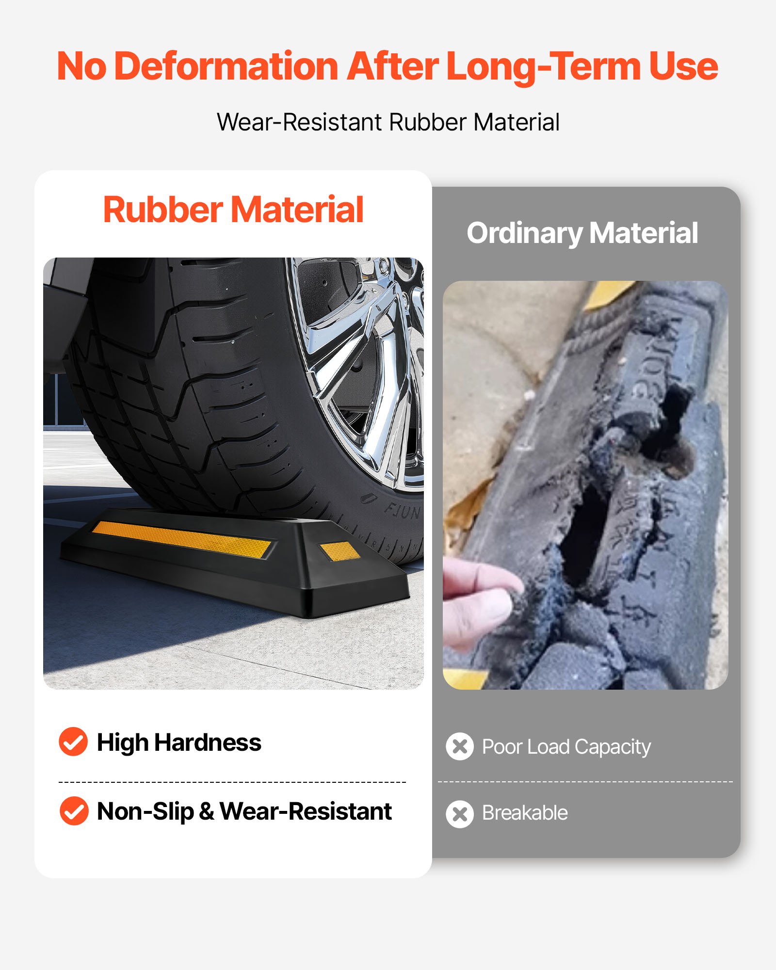 High Hardness Material: Made of wear-resistant rubber, the parking curb provides higher hardness, stronger load capacity, non-slip property, and wear resistance than ordinary materials. It has no deformation after long-term use and is more durable