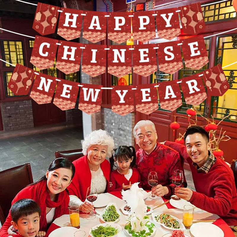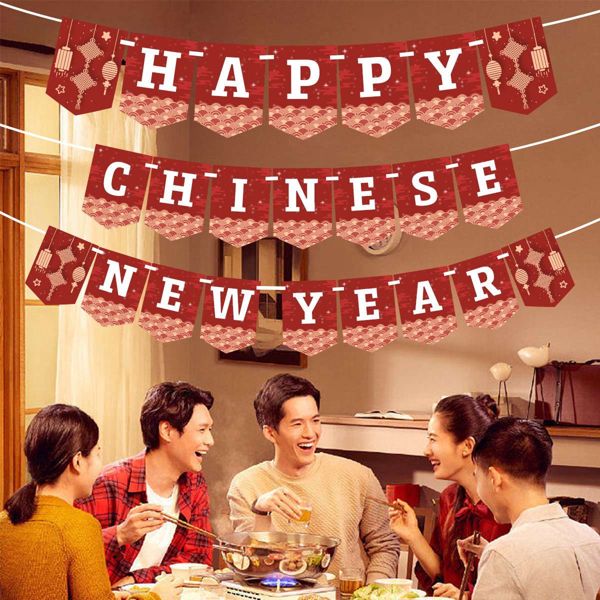 Party New Year Hanging Flag Banner Holiday Scene Layout