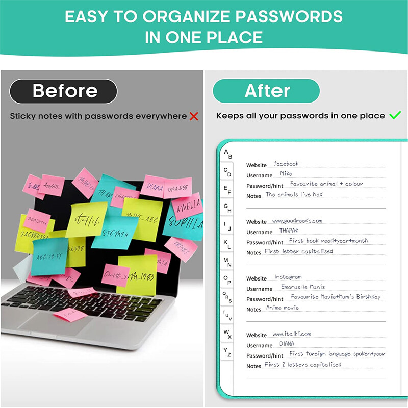 SECURE ORGANIZATIONAL PASSWORDS: stores over 480 entries of website login passwords and usernames that cannot be hacked; another section is used to record important notes such as birthdays, addresses, customer service phone numbers, software licenses and even recent order histories. |