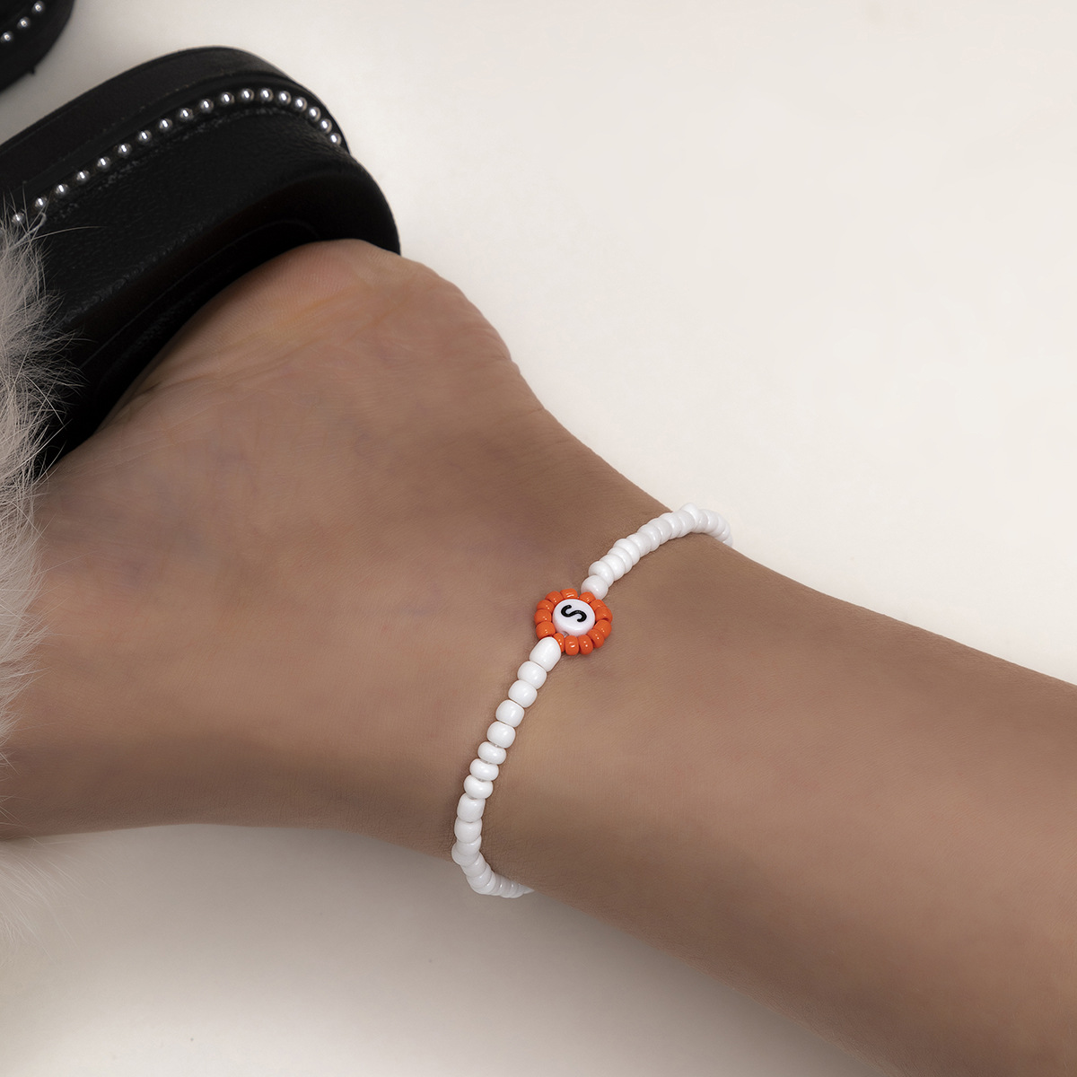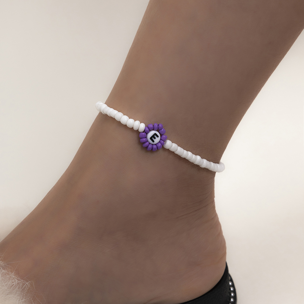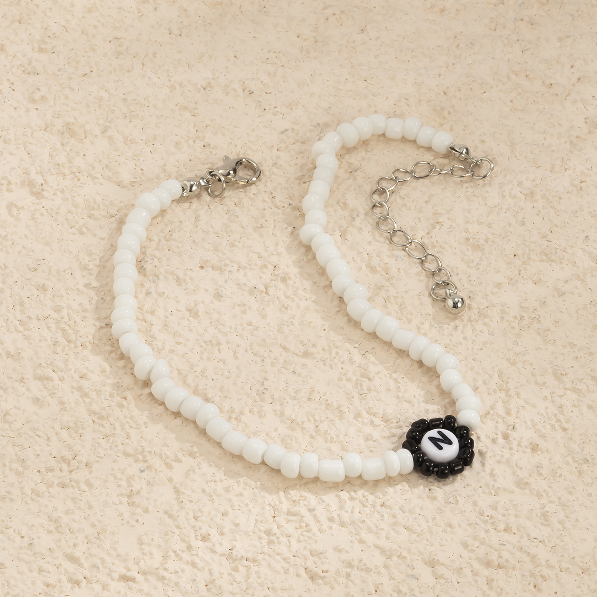 Pastoral Color Rice Beads Alphabet Anklet