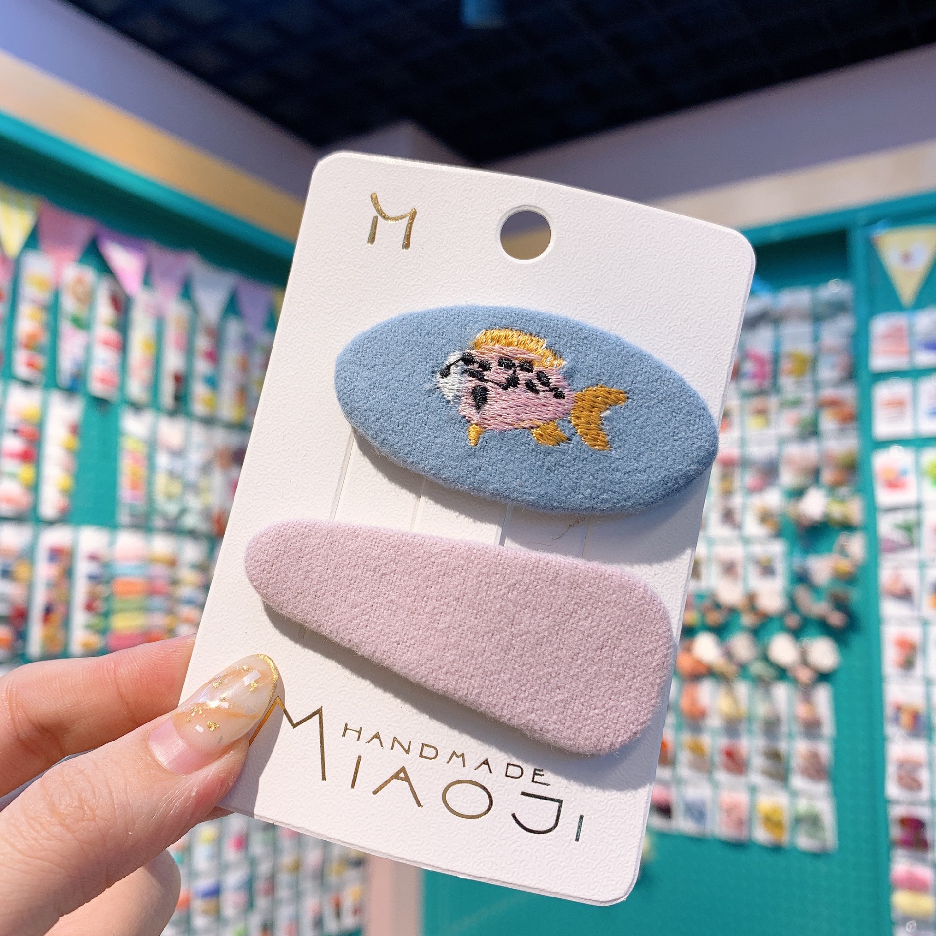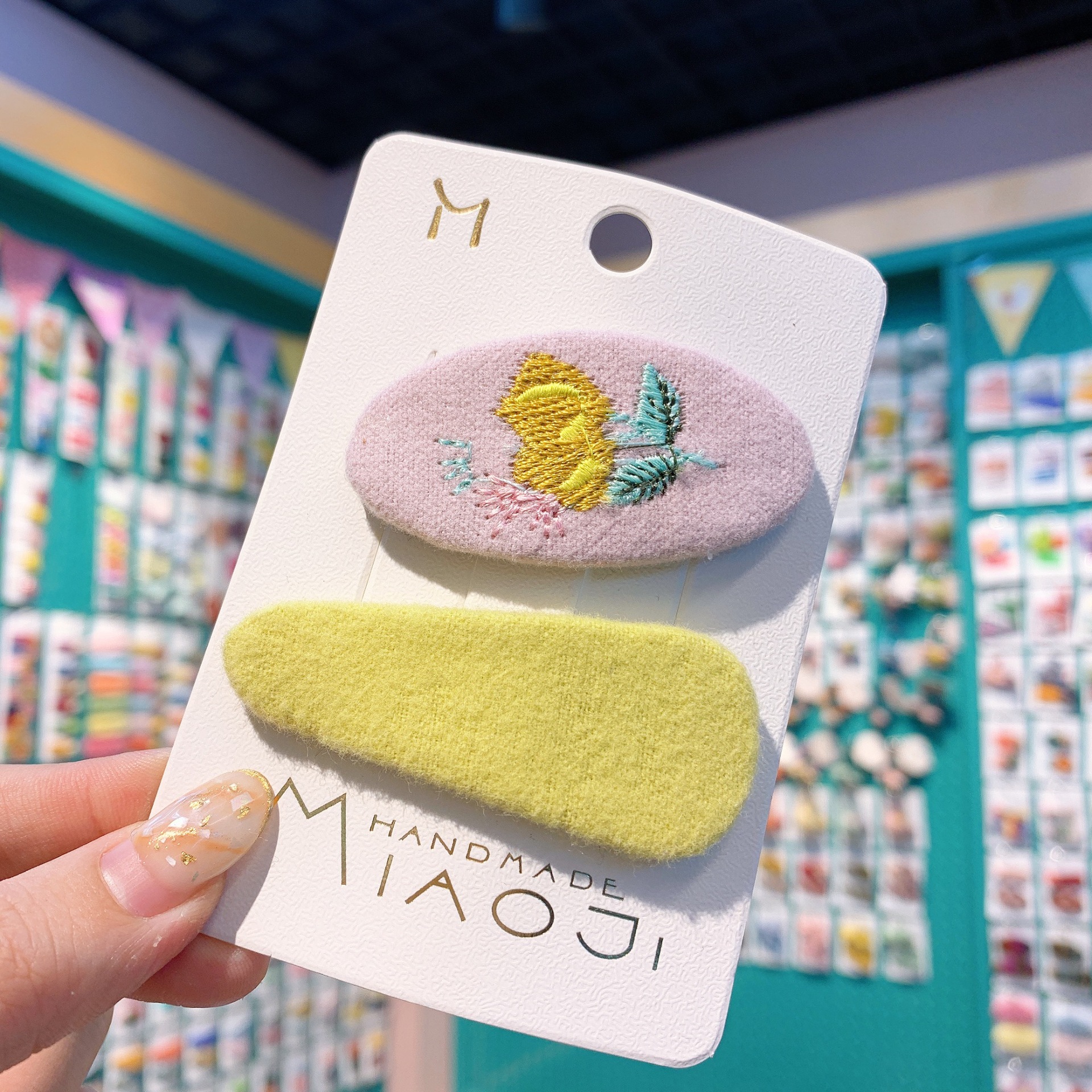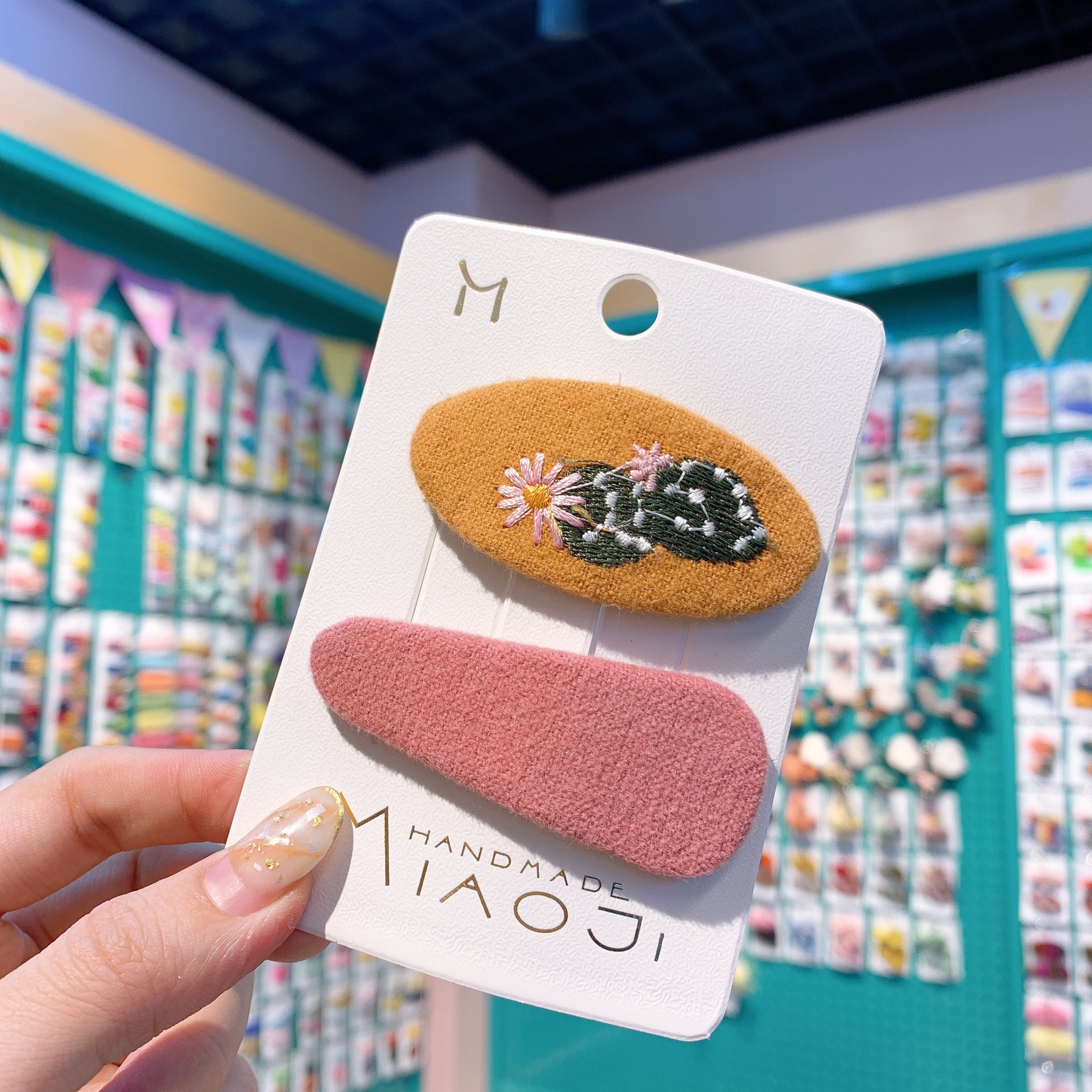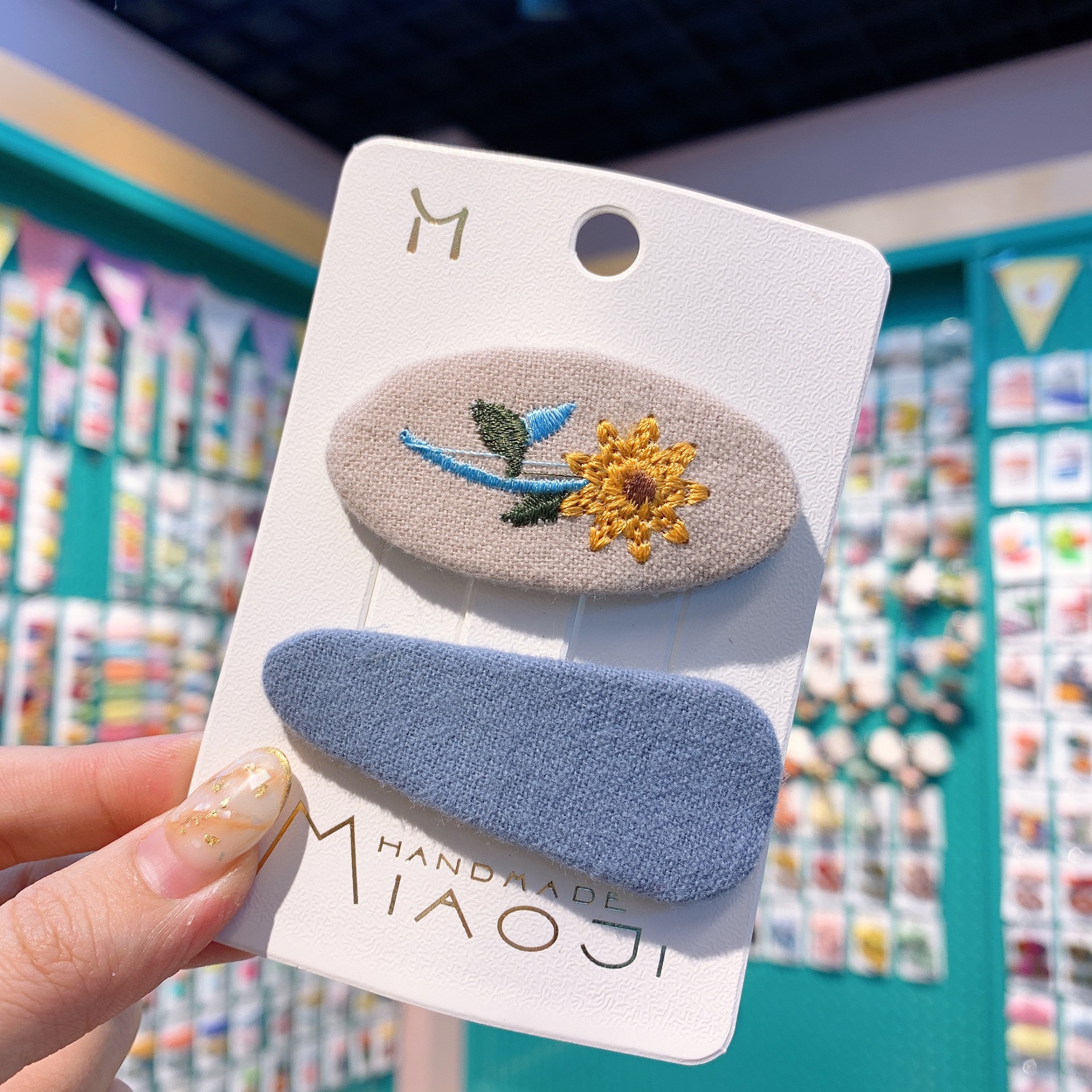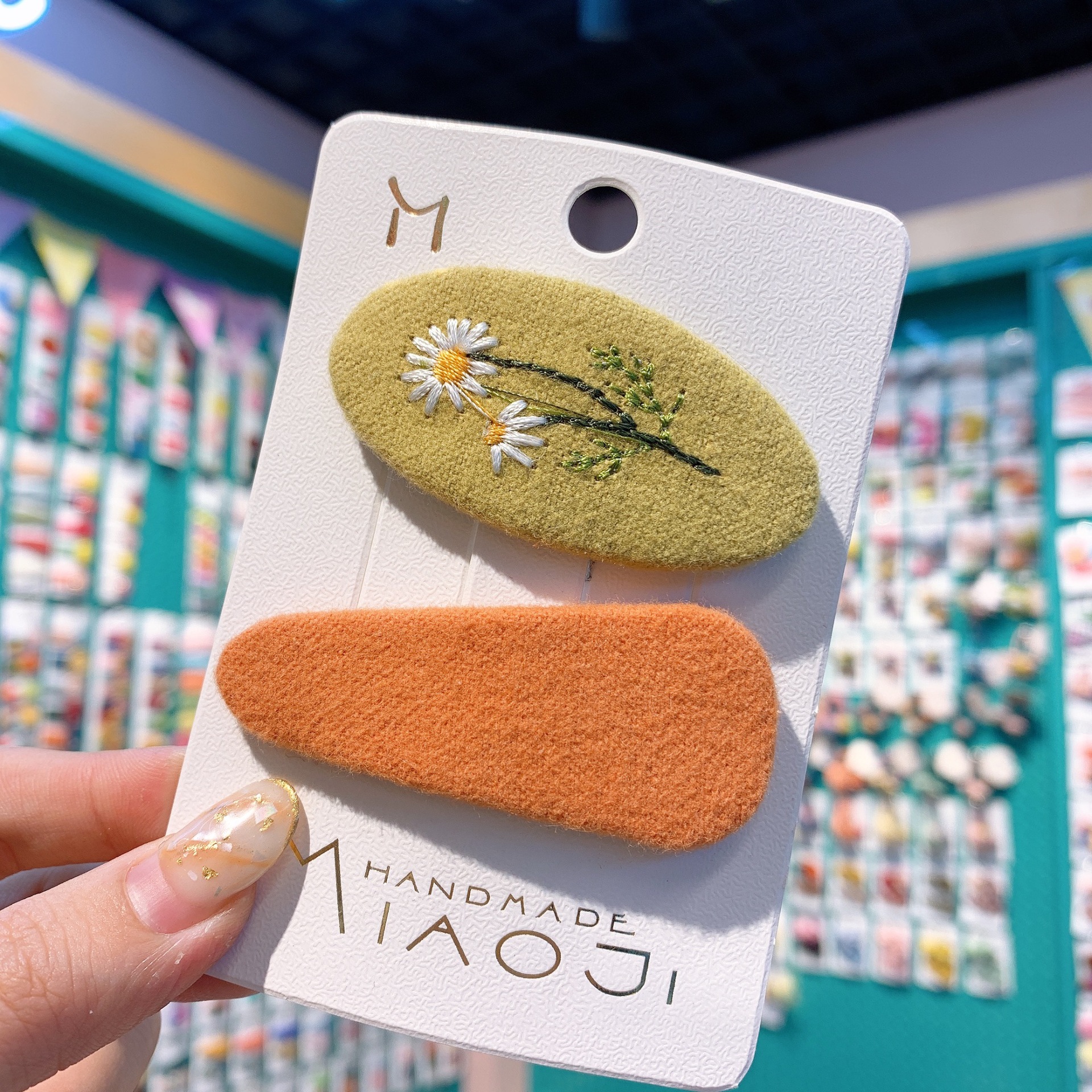 Korea Korean girl solid color Liu Haibin clip hand-embroidered leaf cloth clip small and exquisite broken hair bb hair clip