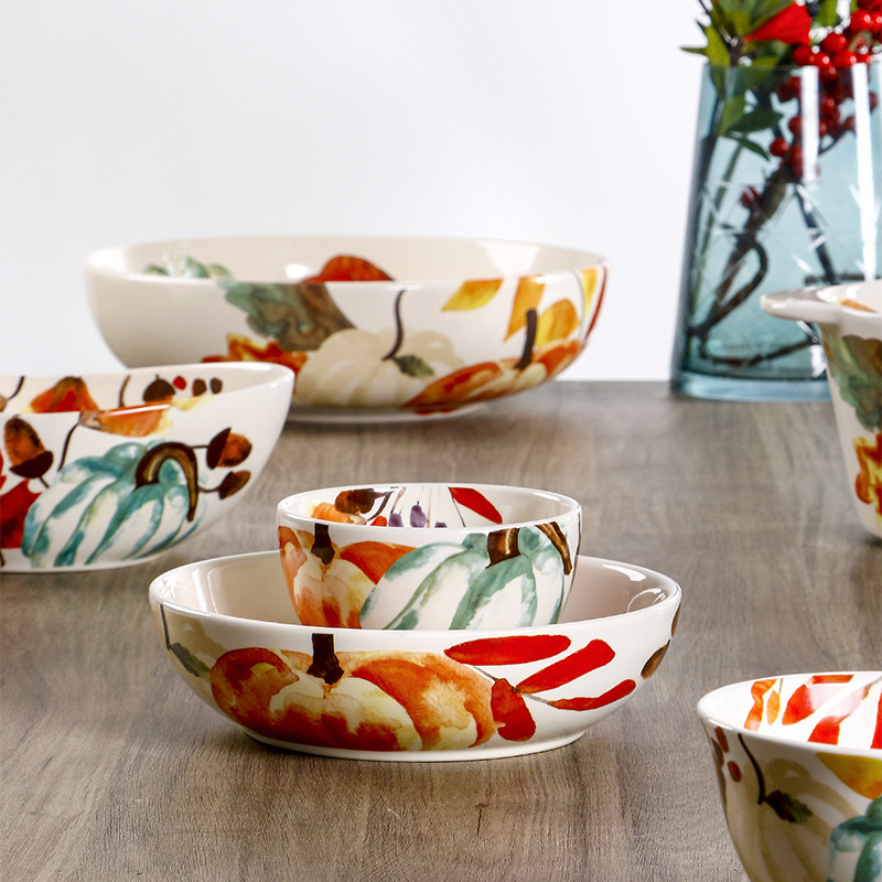 Color: ink pumpkin-4.7-inch small bowl, ink pumpkin-5-inch rain hat-shaped bowl, ink pumpkin-8-inch deep plate, ink pumpkin-12-inch shallow basin, ink pumpkin-big ingot bowl, ink pumpkin-Double-ear bowl, ink pumpkin-Breakfast Cup