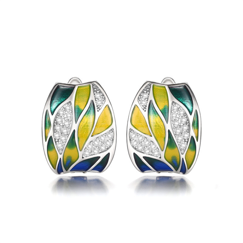 Pastoral Style Green Mori Style Enamel Zircon Earrings Elegant Ear Clip