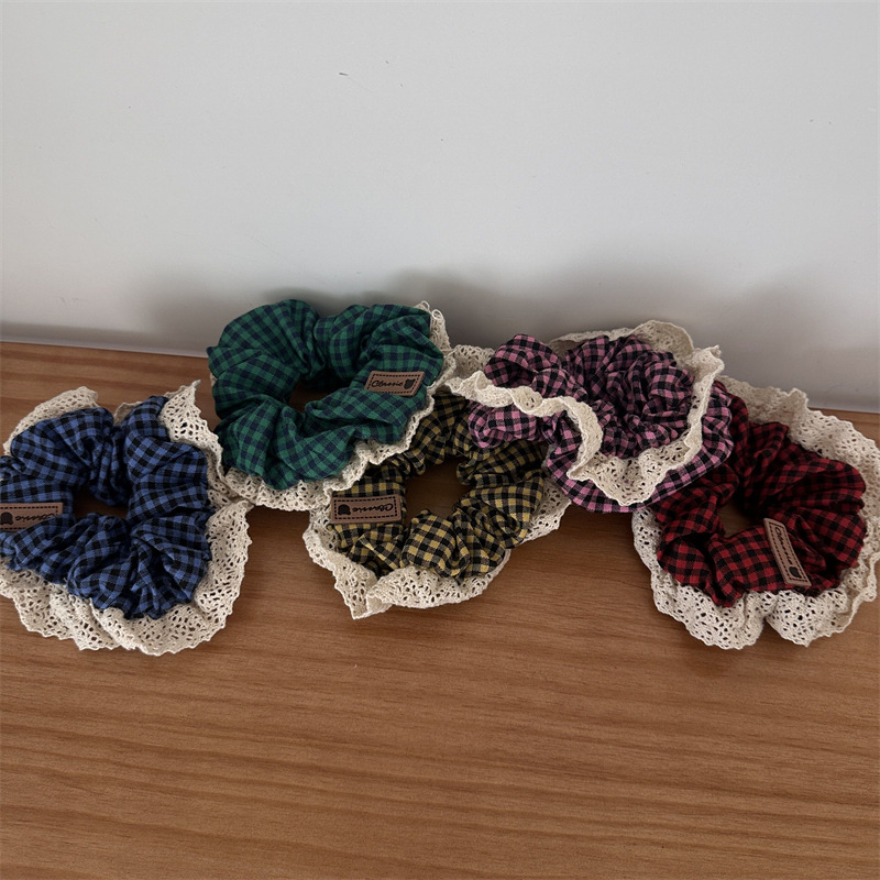 Color: retro plaid lace trim-red, retro plaid lace trim-pink, retro plaid lace trim-yellow, retro plaid lace trim-Green, retro plaid lace trim-Blue