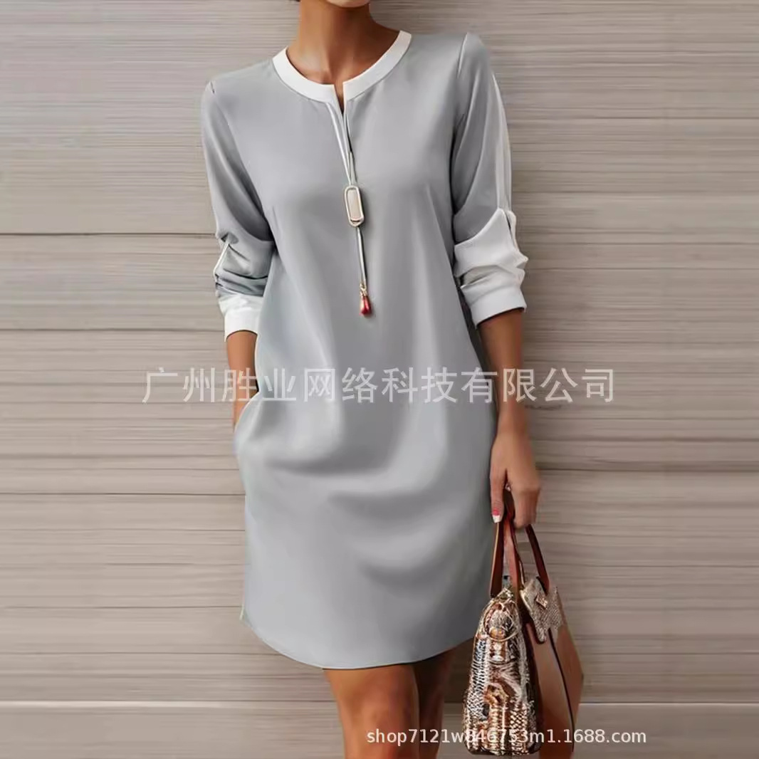 Patchwork Color Round Neck Loose Casual Dress